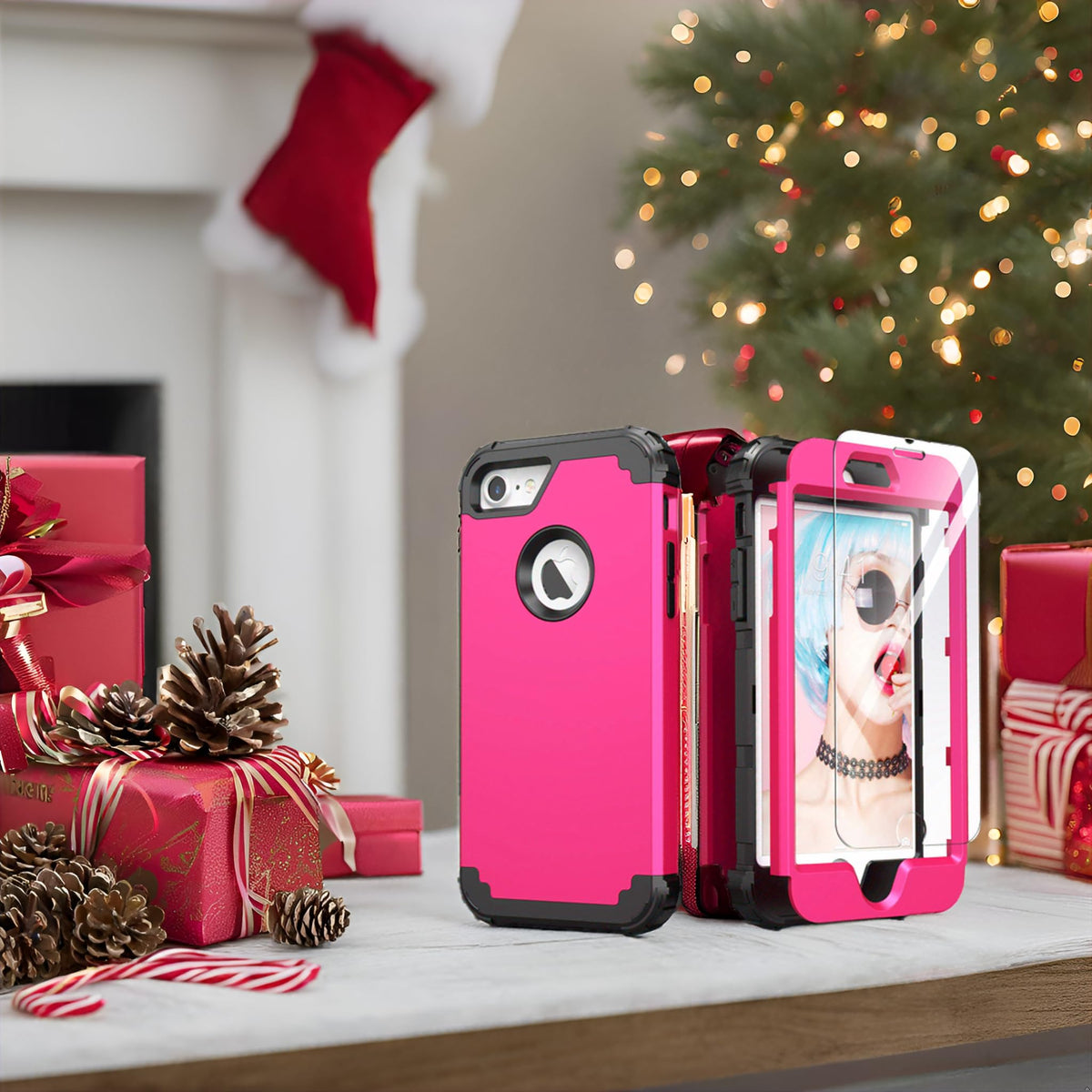 Idweel Iphone 8 Case With Tempered Glass Screen Protector, Iphone 7 Case, 3 In 1 Shock Absorption Durable Heavy Duty Hard Pc Cov