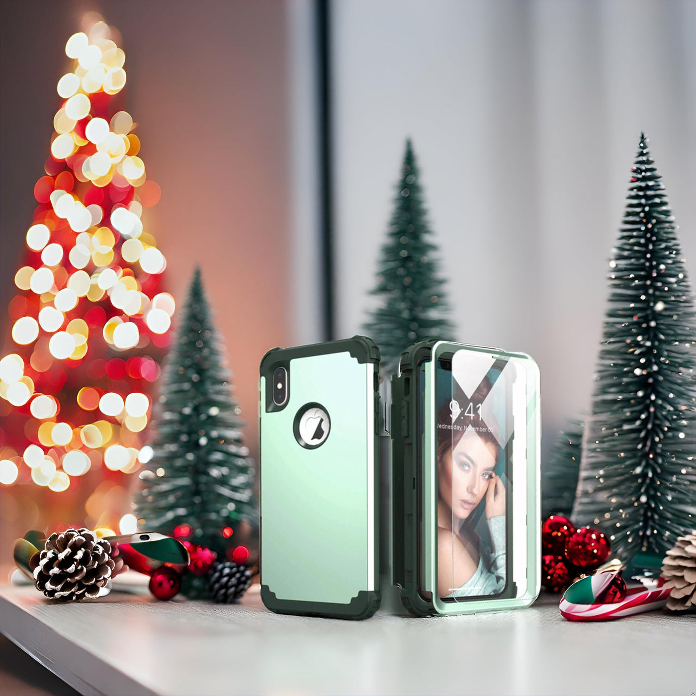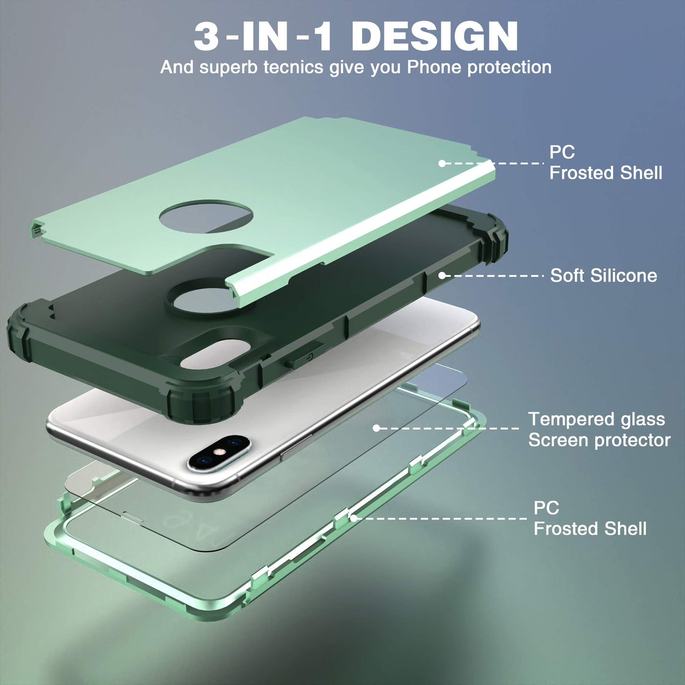 Idweel Iphone Xs Max Case With Tempered Glass Screen Protector, 3 In 1 Shock Absorption Heavy Duty Protection Hard Pc Cover Soft