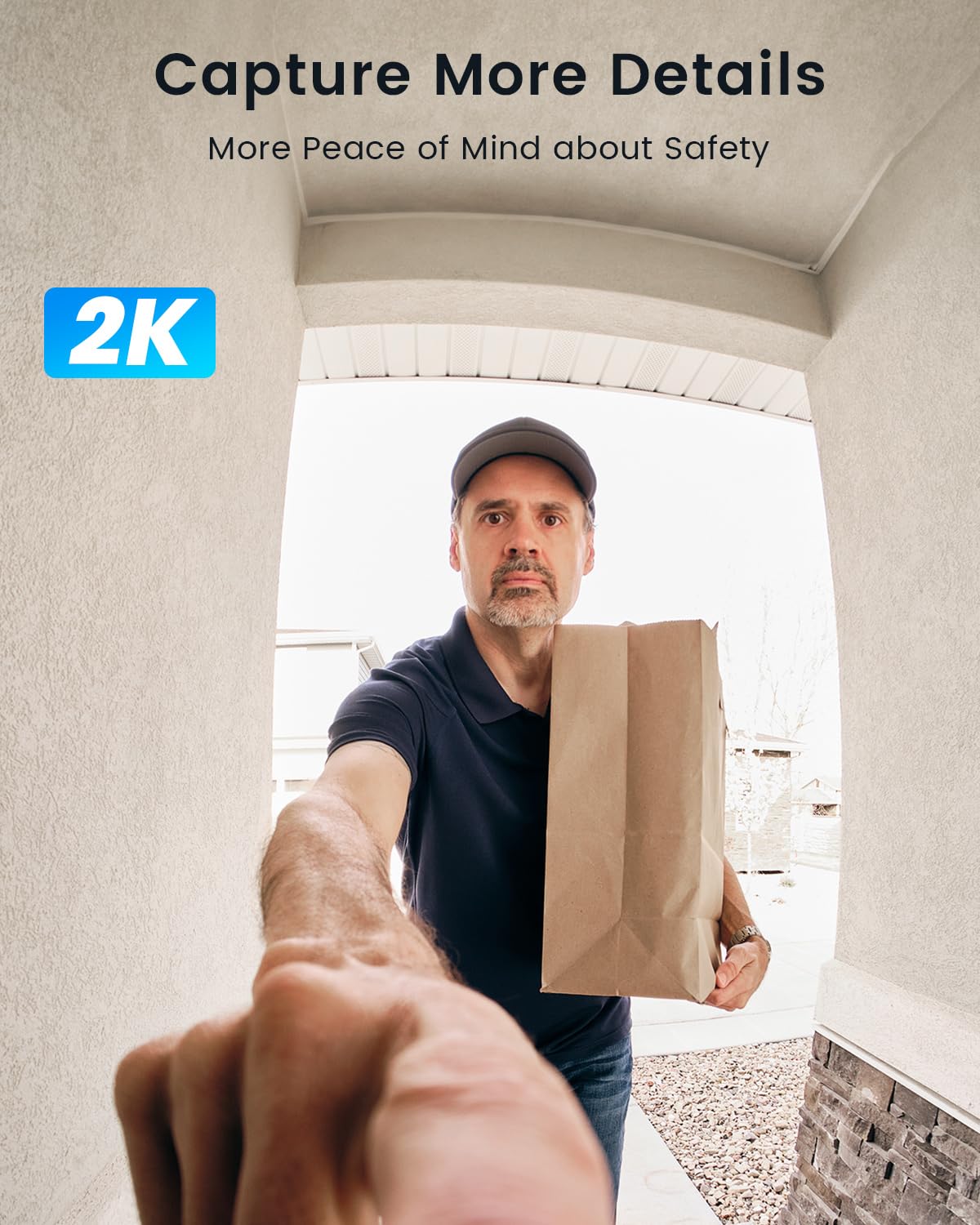 Q: What is the video quality of the ieGeek 2K Doorbell Camera?A: The ieGeek 2K Doorbell Camera features 2K HD image quality, providing clear visuals of visitors and packages at your doorstep, ensuring you can see details clearly.