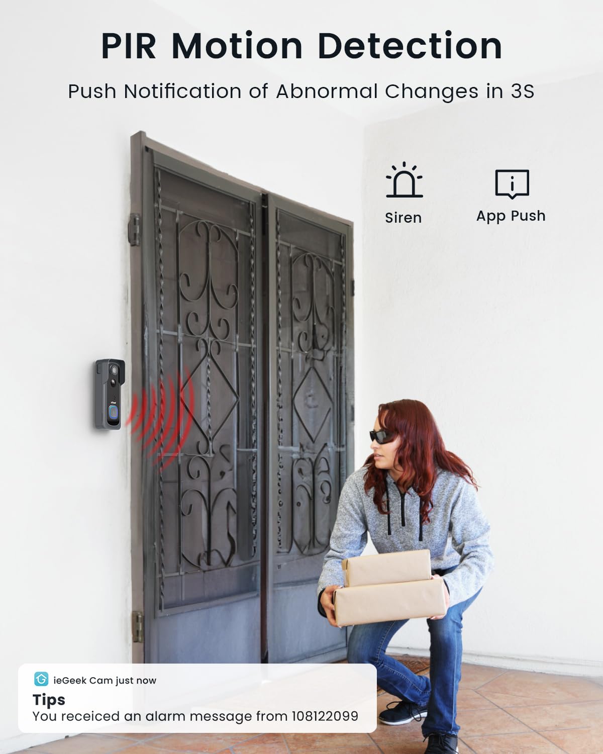 Q: How does the motion detection work on the ieGeek Doorbell Camera?A: The ieGeek Doorbell Camera features a patented PIR motion detector with a range of up to 20 feet. It sends real-time alerts to your phone within 3 seconds of detecting motion, allowing you to view and interact with visitors.