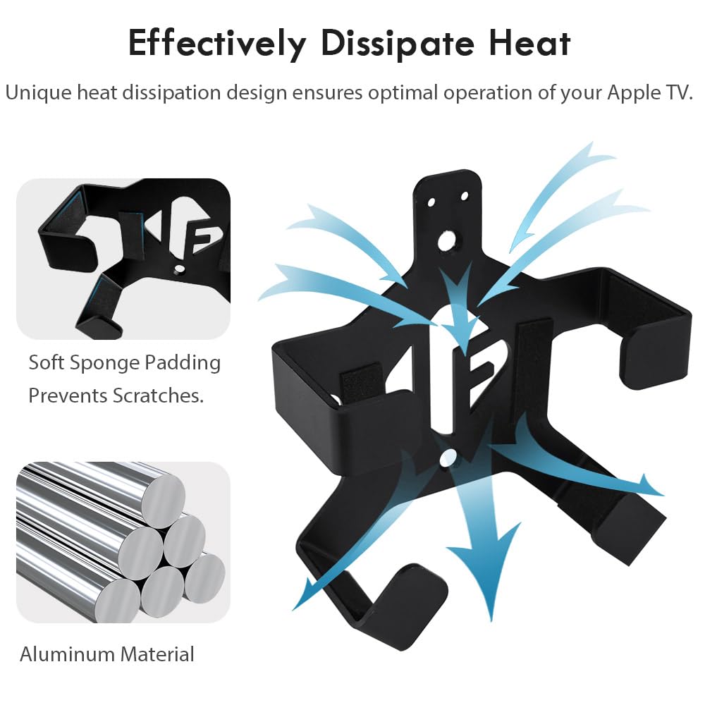 Ifcase Wall/Under Desk/Back Of Tv Mount Compatible With All Apple Tv Generations (Including All 4K Models) 2 Packs (Black)