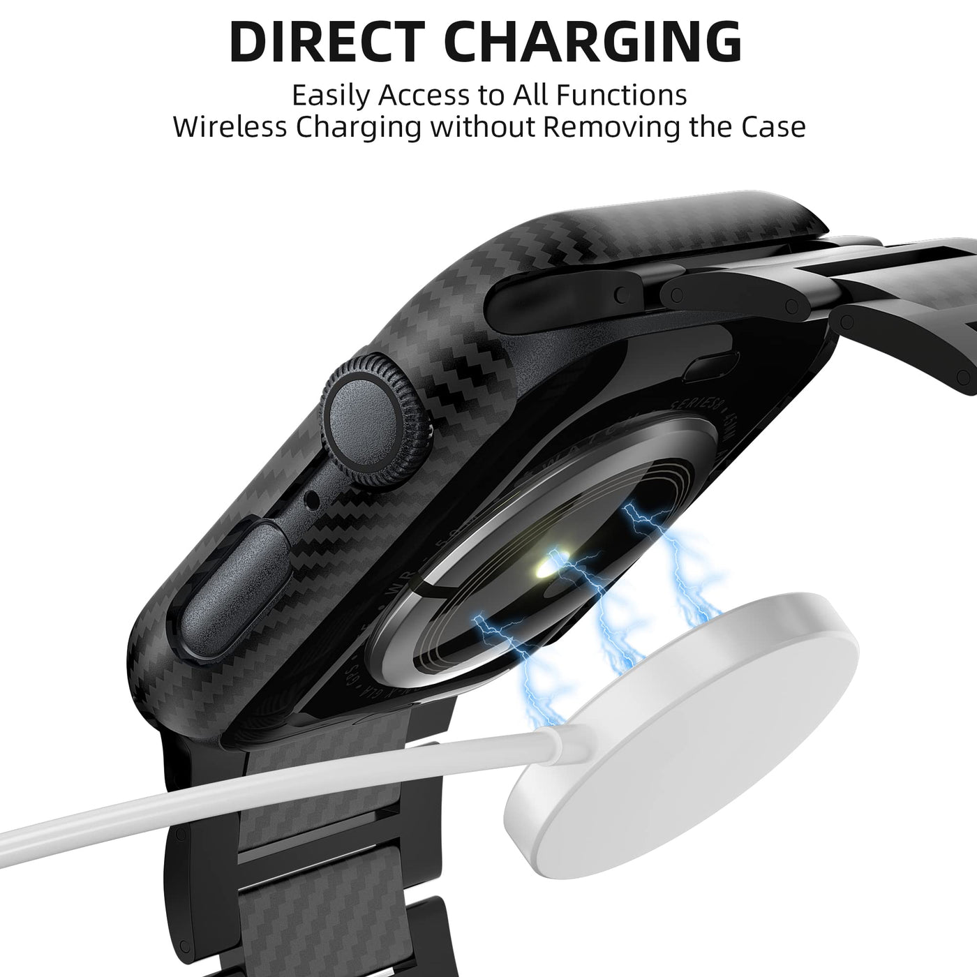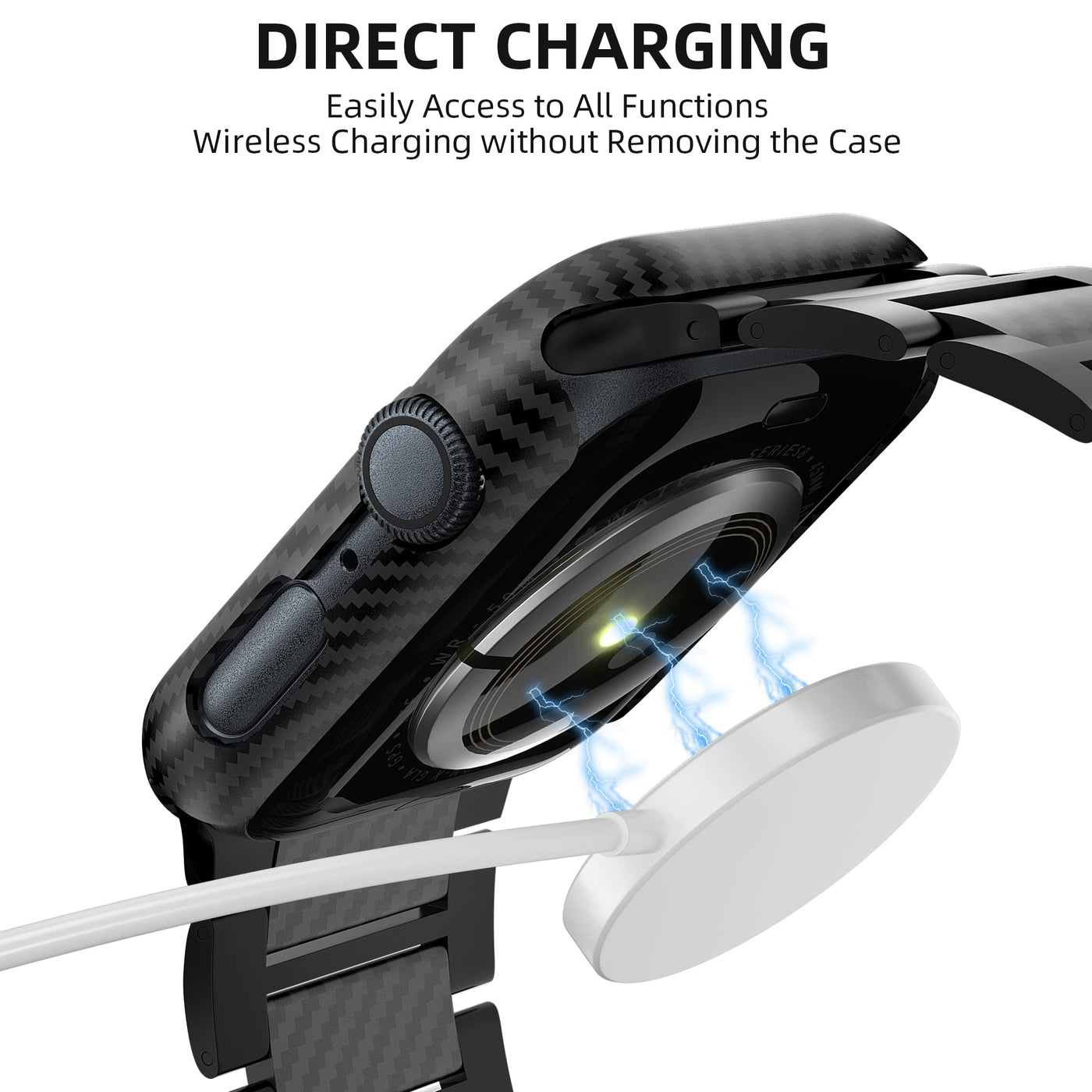 1Simple Fashion Trend Makes Your Watch Look More Upscale 2Perfectly Snug On Your Watch, Protects Full Edges Against Daily Bumps And Shocks 3High Strength And High Toughness Materials, Durable Without Discoloration 4Hollow Out Design On The Back, No Need To Remove The Carbon Fiber Iwatch Case 45Mm When Charging