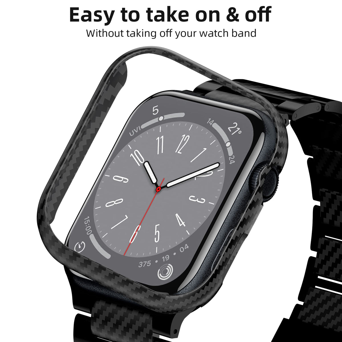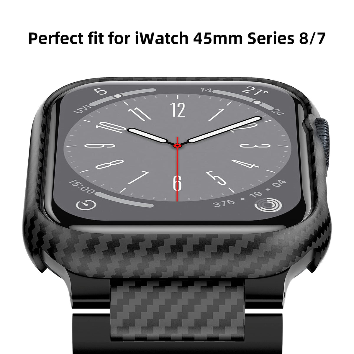 Iiteeology Compatible With Apple Watch Case 45Mm, Genuine Slim Aramid Carbon Fiber Case For Iwatch Series 9 8 7, Matte Black