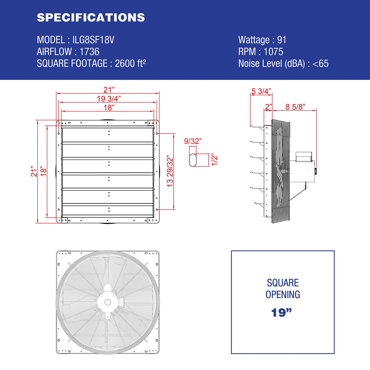 Iliving - Wall-Mounted Shutter Exhaust Fanare You Looking For A Reliable Way To Reduce Your Cooling Costs While Keeping Your Home Cooler And More Comfortable Year-Round If So, Youave Found Just What Youare Looking Formade With Top Quality Materials, Craftsmanship And Engineering, The Iliving Shutter Exhaust Fan Is Designed To Offer Superior Ventilation In Any Space You Choose To Install To Keep Your Living Space Cooler And More Comfortable Year-Round While Reducing Expensive Cooling Billsaheavy-Duty, Galvanized Steel Frameaweather Resistant Aluminum Shutters And Bladesamotion-Balanced For Quiet Operationathermally Protected And Permanently Lubricated Motoraautomatic Shuttersafor Home Cooling And Ventilationacorrosion-Resistant Wire Guardsavariable Speed Setting Functionality On Select Sizes (Controller Sold Separately)Aul Listedaavailable In (8 Or 9) Size Variationsperfect Cooling And Ventilation Solution Forahomesaatticsagaragesashedsareducing Cooling Costsaand Morethe Fan Comes Fully Assembled Out Of The Box Only Installation Required Is The Electrical Hardwiring The Shutter Fan Comes In 8 Different Sizes: 10 Inches, 12 Inches, 16 Inches, 18 Inches, 20 Inches, 24 Inches, 30 Inches, And 36 Inches The 18-Inch Shutter Fan Has Both A Variable Speed Ilg8Sf24V And A Single Speed Model The Iliving 30-Inch And 36-Inch Shutter Fans Are Only Available In Single Speed For Variable-Speed Models, The Iliving Ilg8Sfsc Speed Controller Is Sold Separately