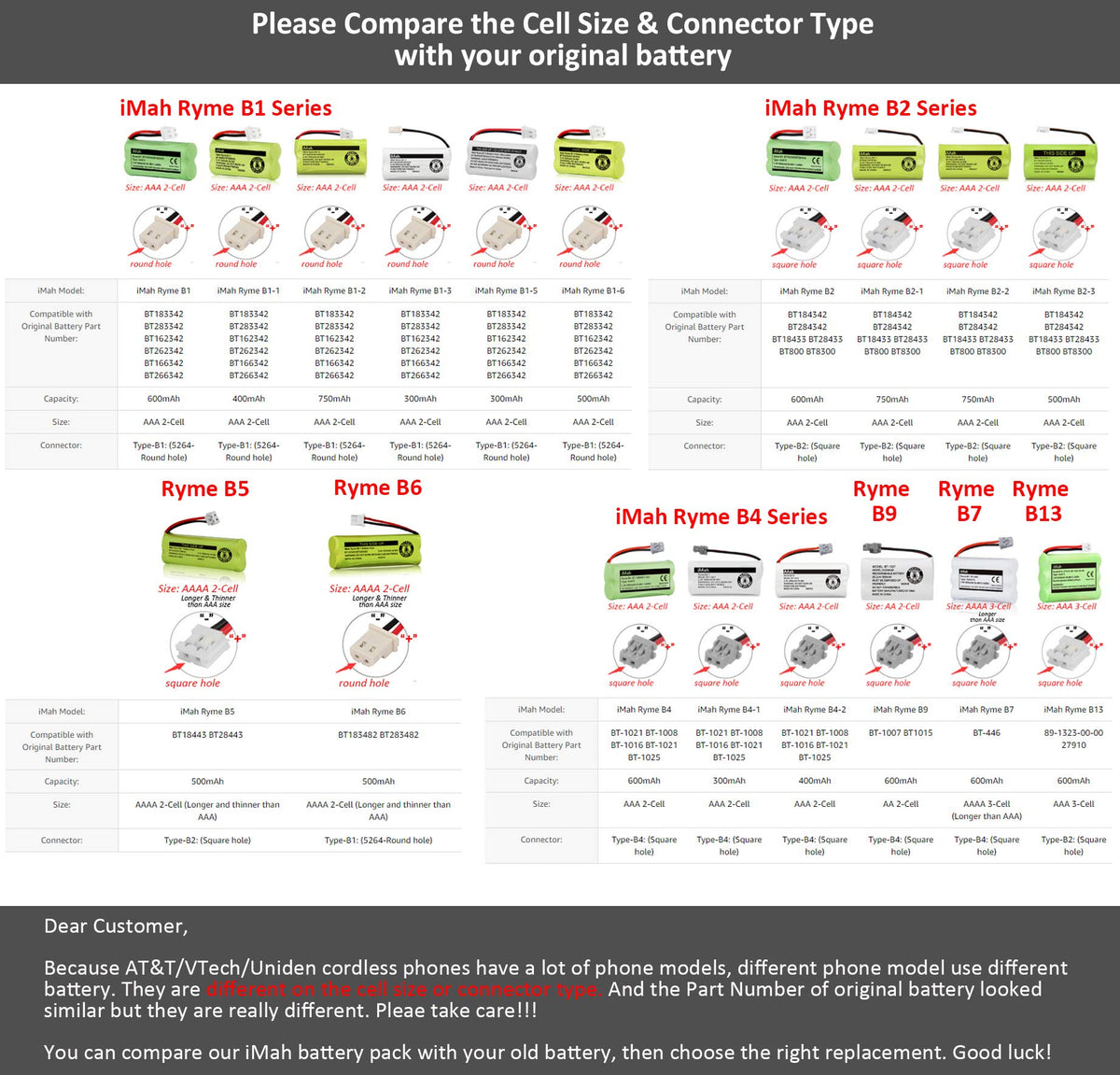 3-Pack Imah Ryme B6 Bt183482/Bt283482 Cordless Phone Battery For Vtech Ds6401 Ds6421 Ds6422 Ds6472 Ls6405 Ls6425 Ls6426 Ls6475 Ls6476 89-1348-01-00 Compatible With The Following Vtech Dect 6.0 Cordless Phone Model: Vtech Ds6401 Ds6401-16 Ds6421 Ds6421-2 Ds6421-26 Ds6421-3 Ds6421-4 Ds6422 Ds6422-4 Ds6423 Ds6424 Ds6425 Ds6426 Ds6472 Ds6472-6 Ls6405 Ls6425 Ls6425-2 Ls6425-3 Ls6425-3 Ls6425-4 Ls6426 Ls6426-3 Ls6475 Ls6475-2 Ls6475-3 Ls6476 Replace Battery Part Number: Vtech Bt183482/Bt283482 Bt183482 Bt283482 89-1348-01-00
