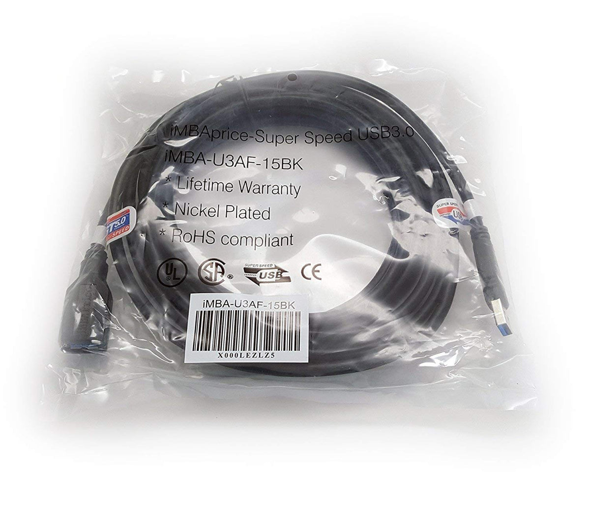 Imbaprice Usb 3.0 Extender - 15 Feet Superspeed Usb 3.0 A Male To Usb 3.0 A Female Extension Cable (Black)