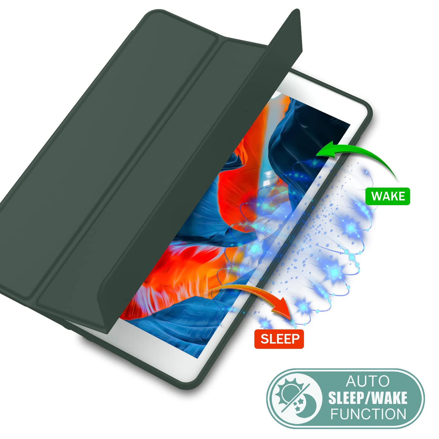 Imieet Ipad 9Th Generation Case 2021/Ipad 8Th Generation Case 2020 10.2 Inch With Pencil Holder, Ipad 7Th Gen 2019 Case With Soft Baby Skin Silicone Back, Auto Wake/Sleep Cover(Dark Green)