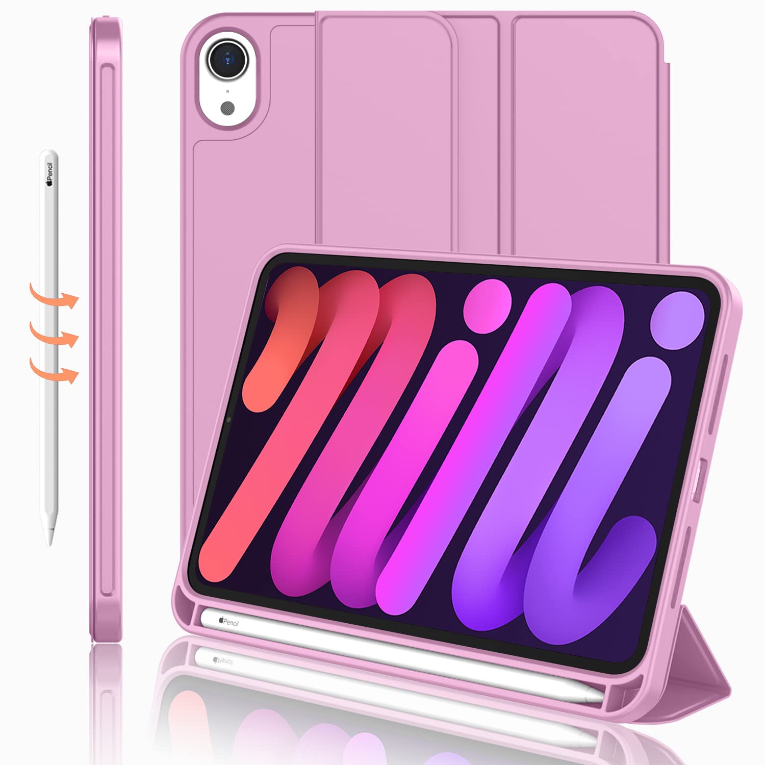 Imieet Ipad Mini 7 Case 2024 (A17 Pro), Ipad Mini 6 Case (8.3 Inch,2021 Model), Ipad Mini 7Th/6Th Generation Case With Pencil Holder, Trifold Stand Smart Case With Soft Tpu Back,Pastel Violet