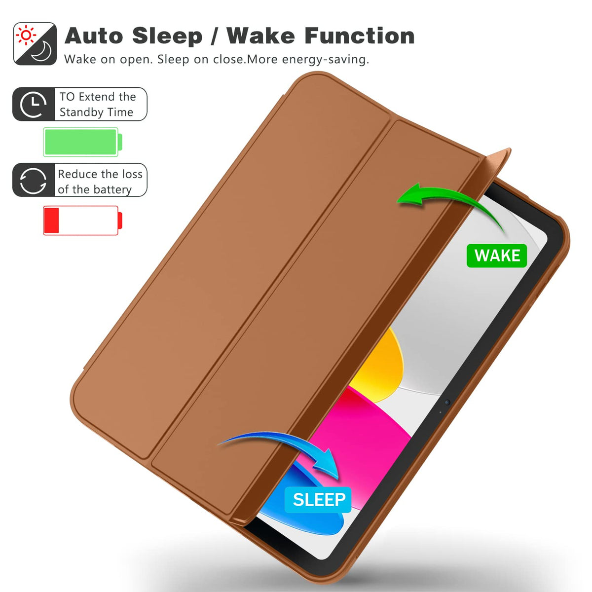 Imieet New Ipad 10.9 Inch Case 2022(10Th Gen) With Pencil Holder,Trifold Stand Smart Case With Soft Tpu Back,Auto Wake/Sleep(Bro