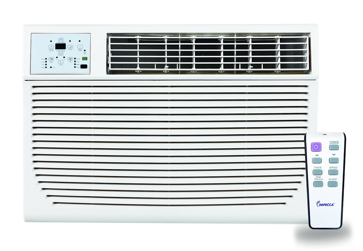 Quality Performance Save Money And Stay Cool With The Impecca Through The Wall Room Air Conditioning Unit. Its 8K-14K Cooling Btu/H, Operating Using Energy-Efficient Technology, Will Easily Cool A Room With Up To 450-550 Square Feet. Guide The Air Flow As You Like With Four-Way Air Direction. In The Case Of A Power Outage, The Impecca Preferred Air Conditioner Will Memorize And Resume At Your Temperature Settings When Power Is Restored. 3 Cooling Speeds 3 Fan-Only Speeds 24 Hour Timer Sleep Mode Auto Restart Electronic Controls With Led Display Clean Filter Indicator Energy Saver Function Remote Control Eco-Friendly Refrigerant Performance Cooling Capacity (Btu/Hr) : 12,000 Application Area (Sq. Feet) : 450-550 Eer (Btu/H.W) : 9.8 Energy Star : Yes Electrical Ratings Voltage : 115 Watts : 1200 Amps : 11.5 Plug Type : 5-15P Cord Length (Ft.) : 7 Features Dry Mode : Yes Electronic Control/Led Display : Yes Remote Control : Yes Cool/Fan Speeds : 3/3 Auto Restart : Yes Timer : Yes - 24 Hour Energy Saver Mode : Yes Sleep Mode : Yes Air Direction : 4 Moisture Removal (L/Hr) : 1.2 Indoor Noise Level Db(A) (Low) : 56.5 Refrigerant Type : R410A