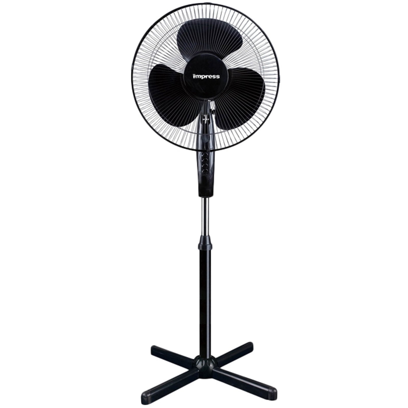 Q: How do I clean and maintain the Impress 16-Inch Stand Fan?A: To clean the Impress Stand Fan, gently wipe the blades and body with a damp cloth. Ensure the fan is unplugged before cleaning. Regularly check for dust buildup and clean as needed to maintain optimal performance.