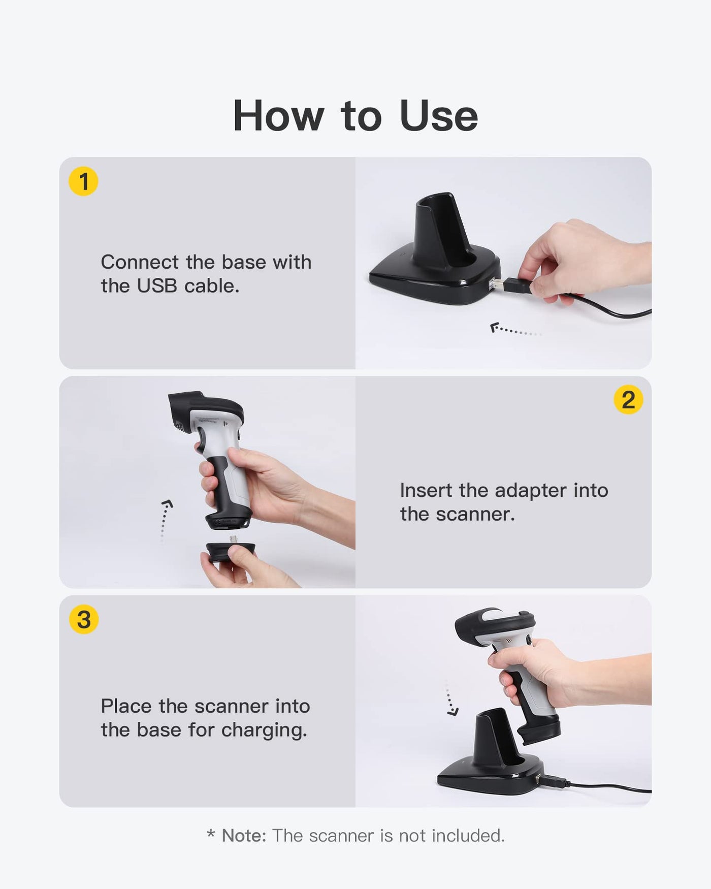 Exclusive Design: This Base Is Tailor Made For Inateck Barcode Scanners, Applicable For Inateck Bcst-60, Bcst-70, Bcst-73, P6 And P7. | 2-In-1 Base: It Not Only Works As A Scanner Stand For Hands-Free Operation And Higher Work Efficiency But Also Doubles As A Charger When A Scanner Sits In It. | Easy To Use: 3-Step Easy Assembly, Plug And Play. | Non-Slip Design: The 4 Non-Slip Rubber Pads At The Bottom Of The Base Ensures The Safety In Use, Preventing The Scanner From Wobbling. | What You Get: Base *1, Adapter*1, Usb Cable*1, User Guide*1