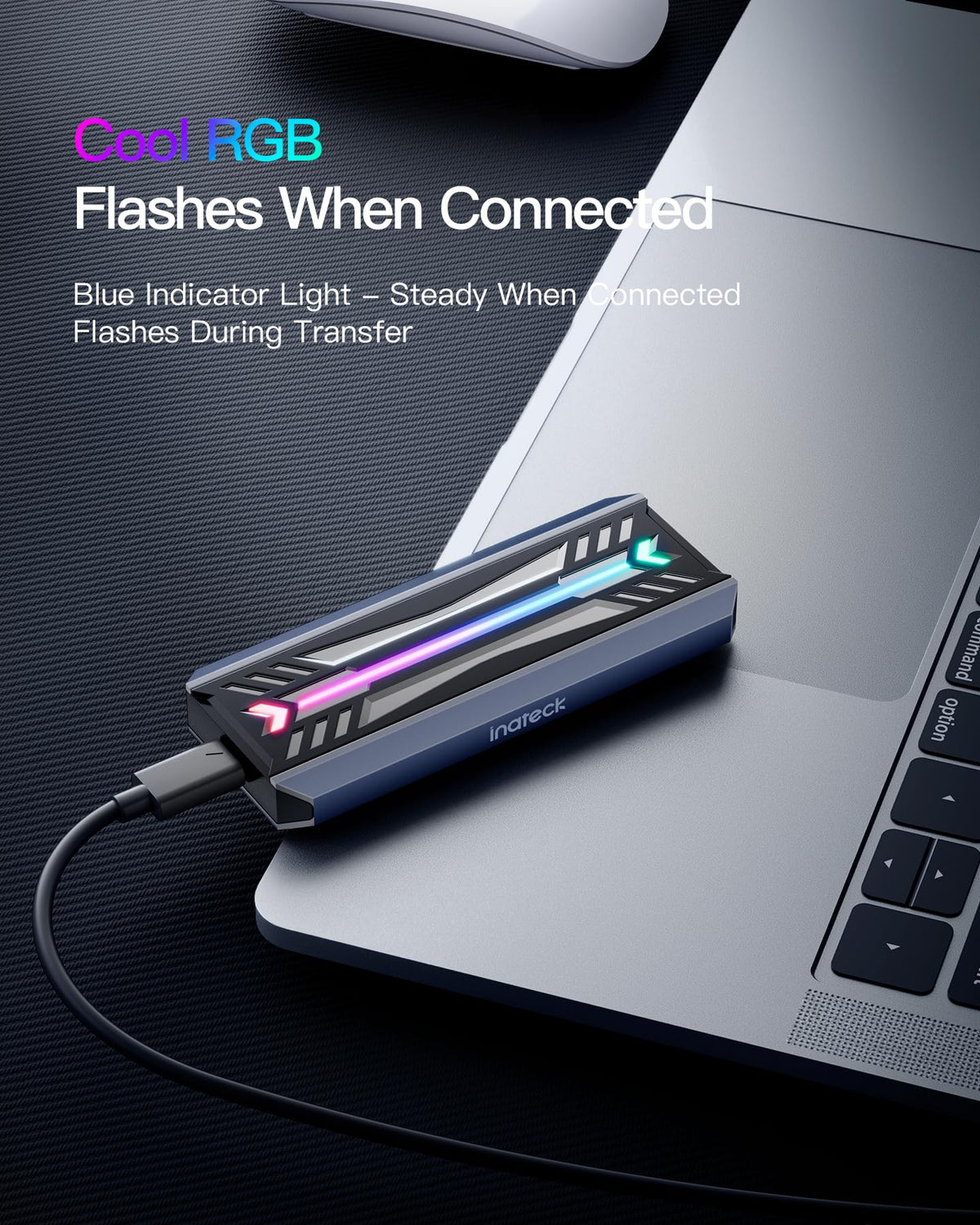 Inateck M.2 Nvme Sata Ssd Enclosure With Rgb,Usb 3.2 Gen 2 (10 Gbps) Enclosure Support Uasp Trim For Nvme/Sata Ssds 2242/2260/22