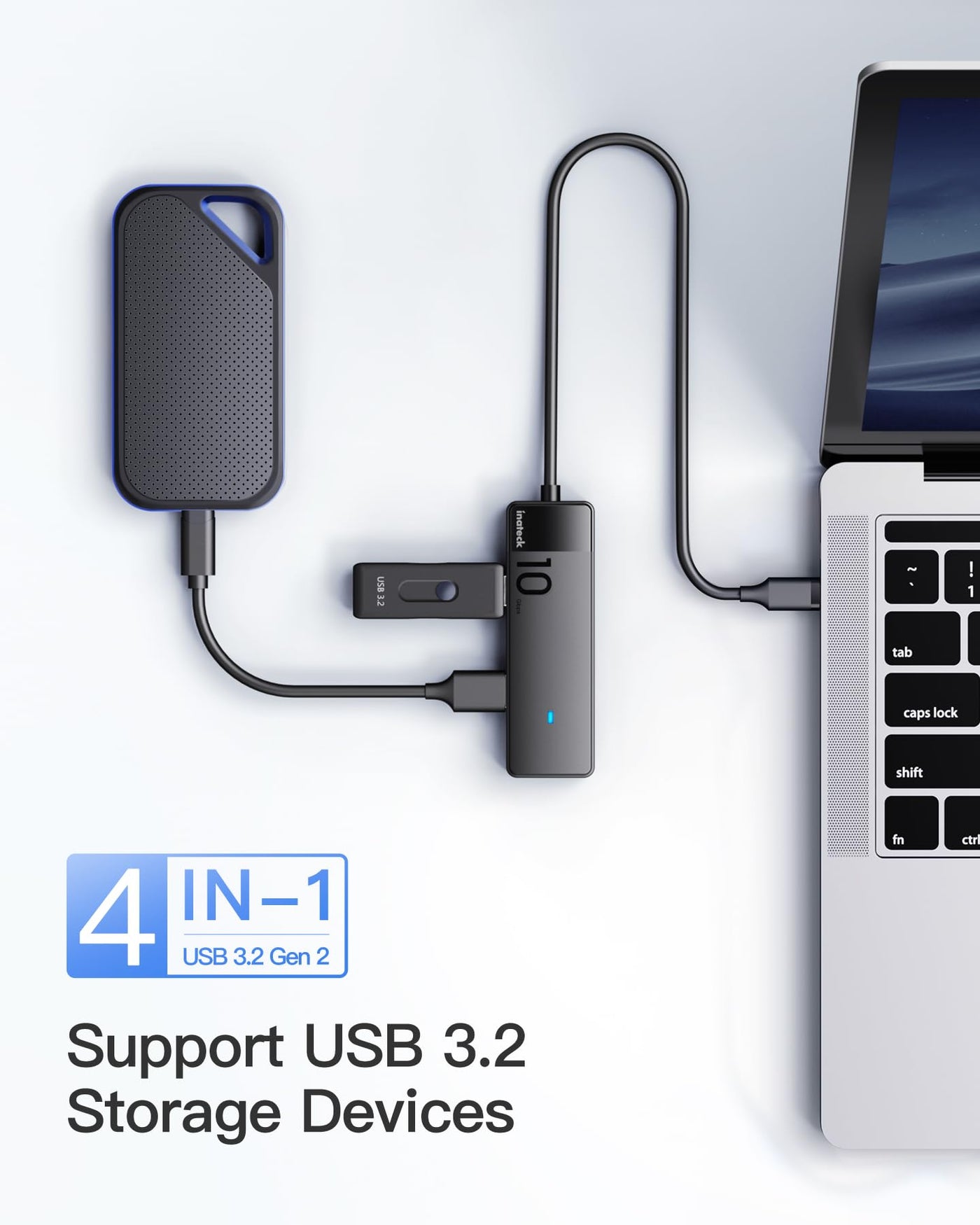 Inateck Usb C Hub, Usb 3.2 Gen 2 Usb C Hub With 4 Usb A Ports, 10Gbps, 1.6 Ft Cable, Compatible With Windows7/8/10/11, Linux, Ma