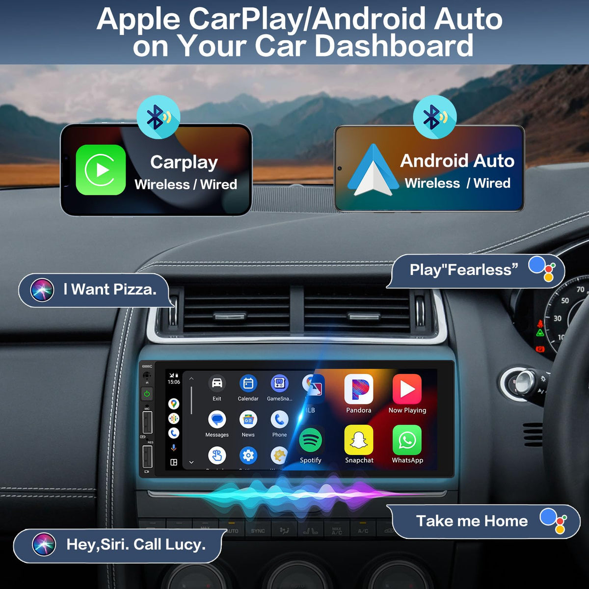 Inefala 6.86 Inch Single Din Car Stereo With Wireless Carplay And Android Auto, Touch Screen Car Radio Bluetooth 5.0, Mirror Lin
