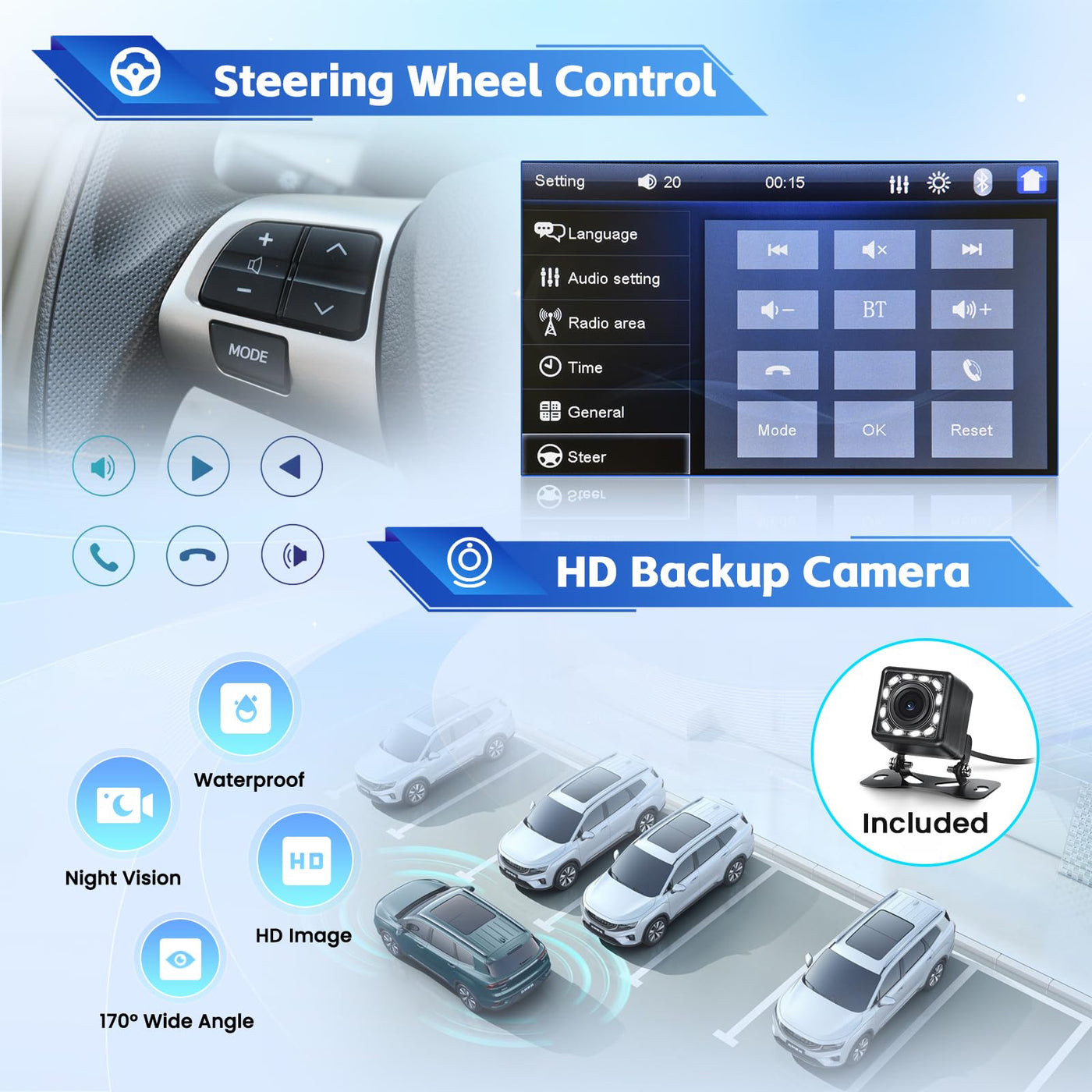 Inefala 9Inch Car Stereo Single Din Radio Touchscreen With Backup Camera, Multimedia Car Audio Support Mirror Link, Hands Free C