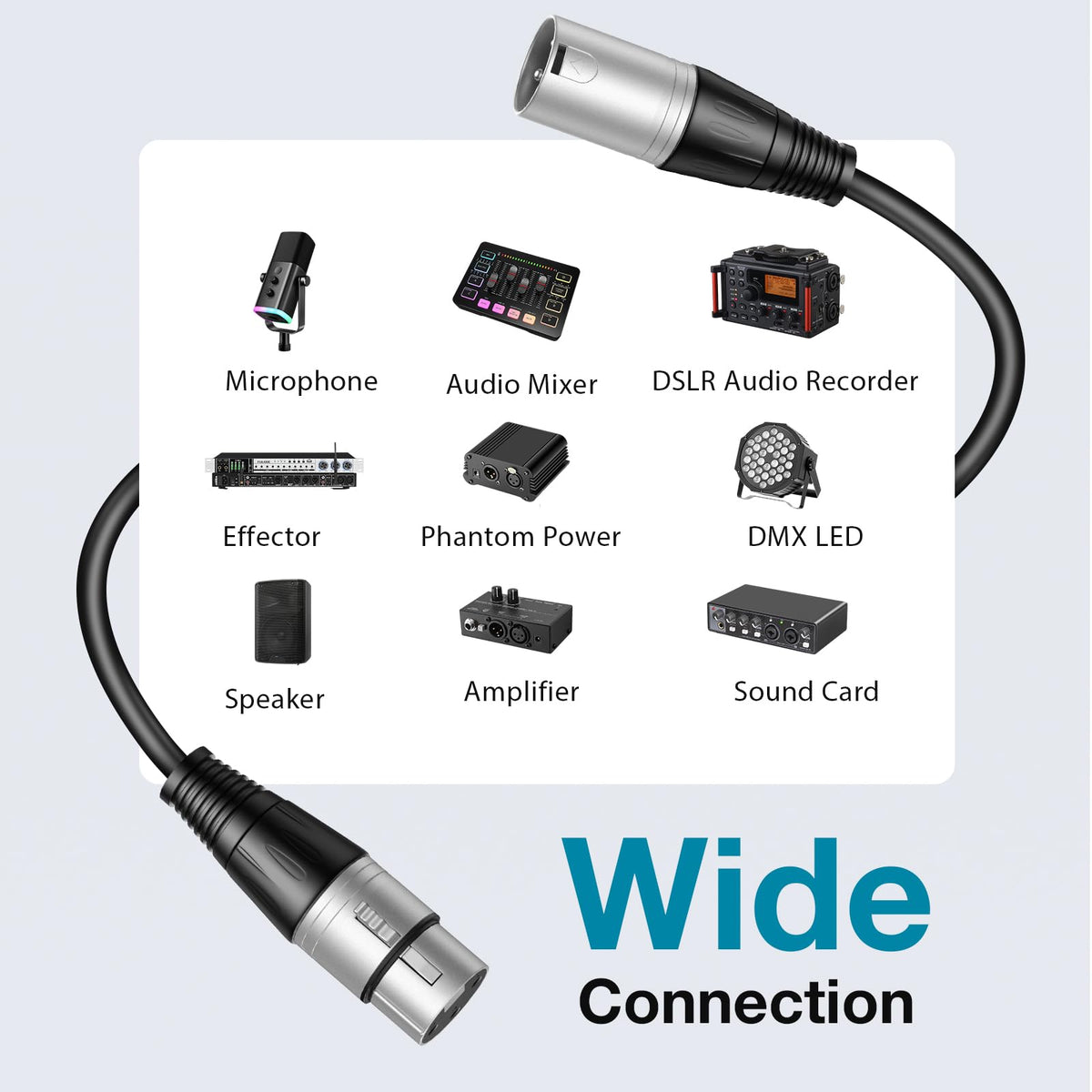 Q: Are these XLR cables compatible with all audio equipment?A: Yes, InnoGear XLR microphone cables are designed for universal compatibility. They can connect seamlessly with various audio equipment, including microphones, mixers, electric organs, and effectors, ensuring versatility in your audio setup.