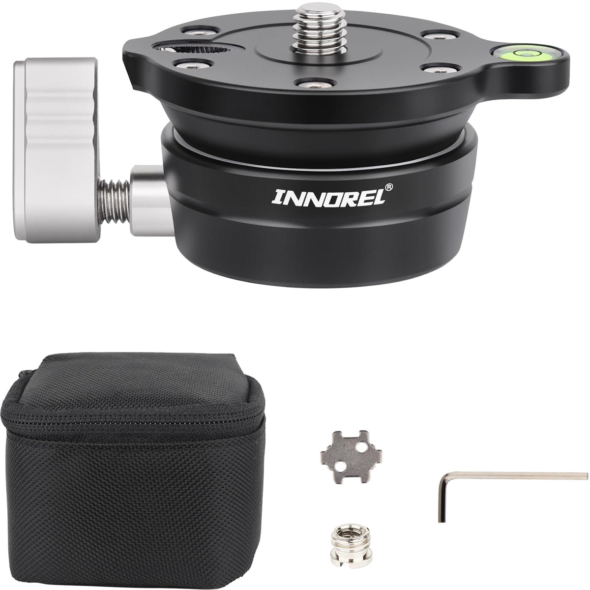 Innorel Tripod Leveling Base, Lb50 Leveling Base Half Ball With Offset Bubble Level And Bubble Level Bag For Ballhead, Fluid Head, Gimbal Heads, Z Flex Head, Tripods And Monopods With 3/8' Thread