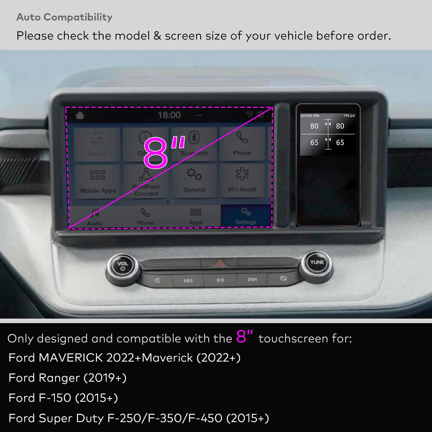This Screen Protector Compatible The 8' Touchscreen With: (2022) Ford Maverick Xl / Xlt / Lariat (2023-2024) Ford Maverick Xl / Xlt / Lariat / Xlt Tremor Off-Road / Lariat Tremor Off-Road