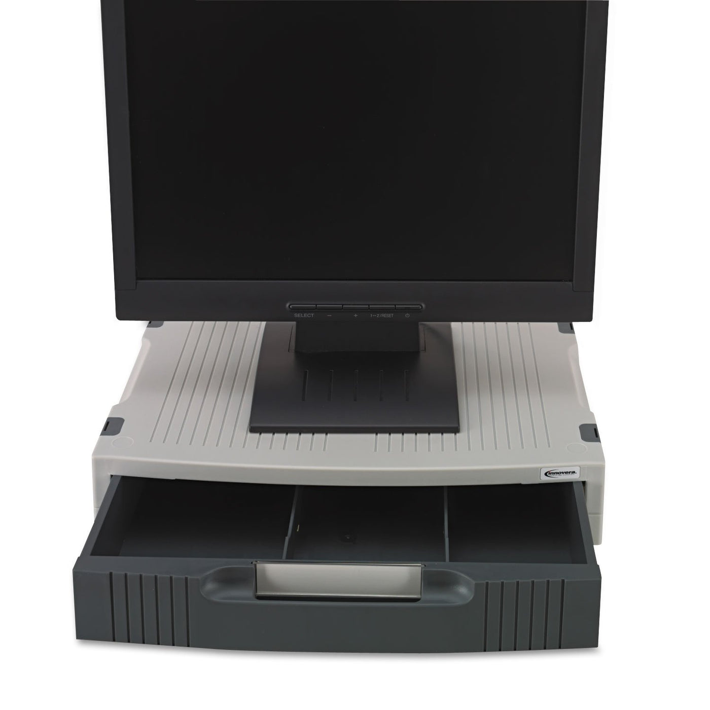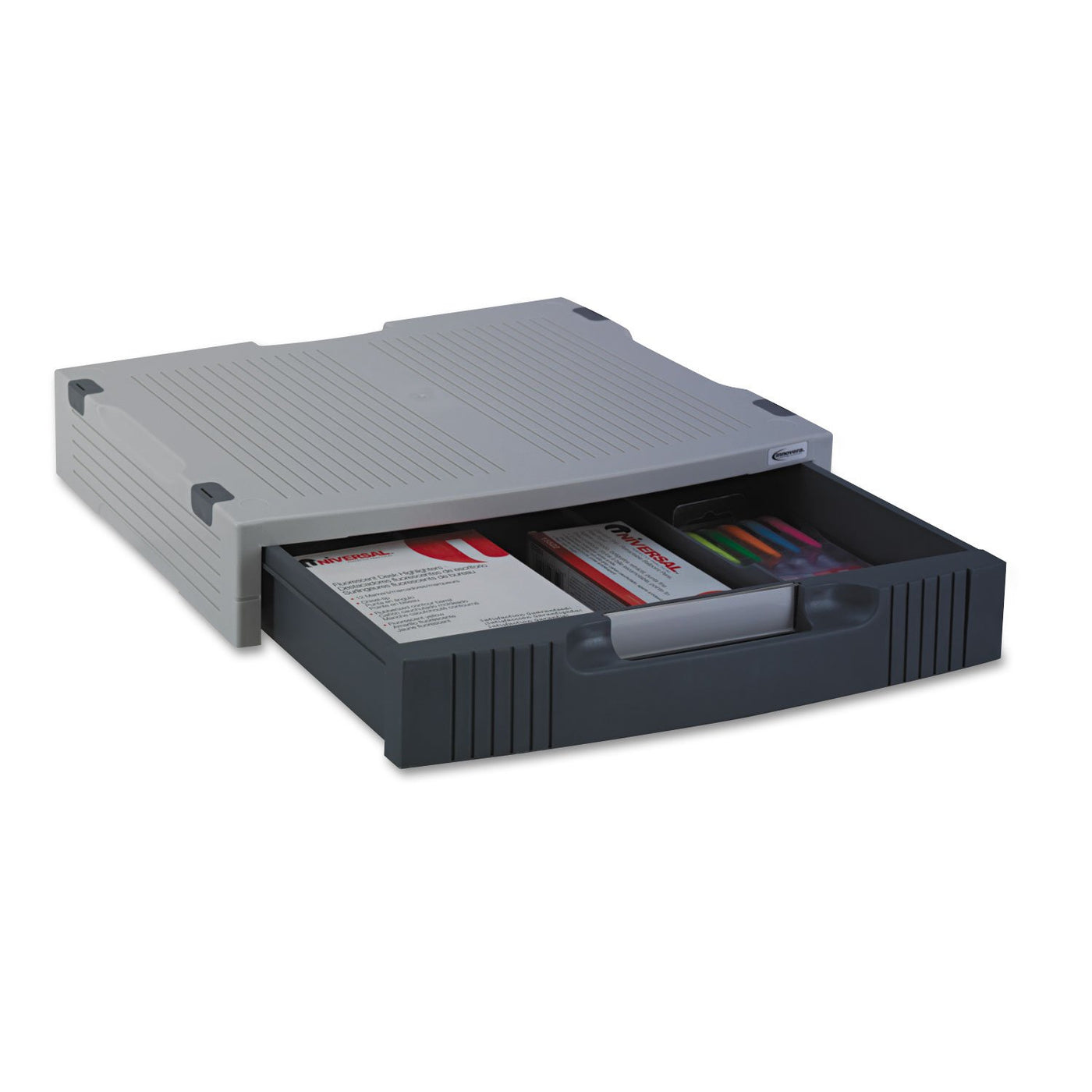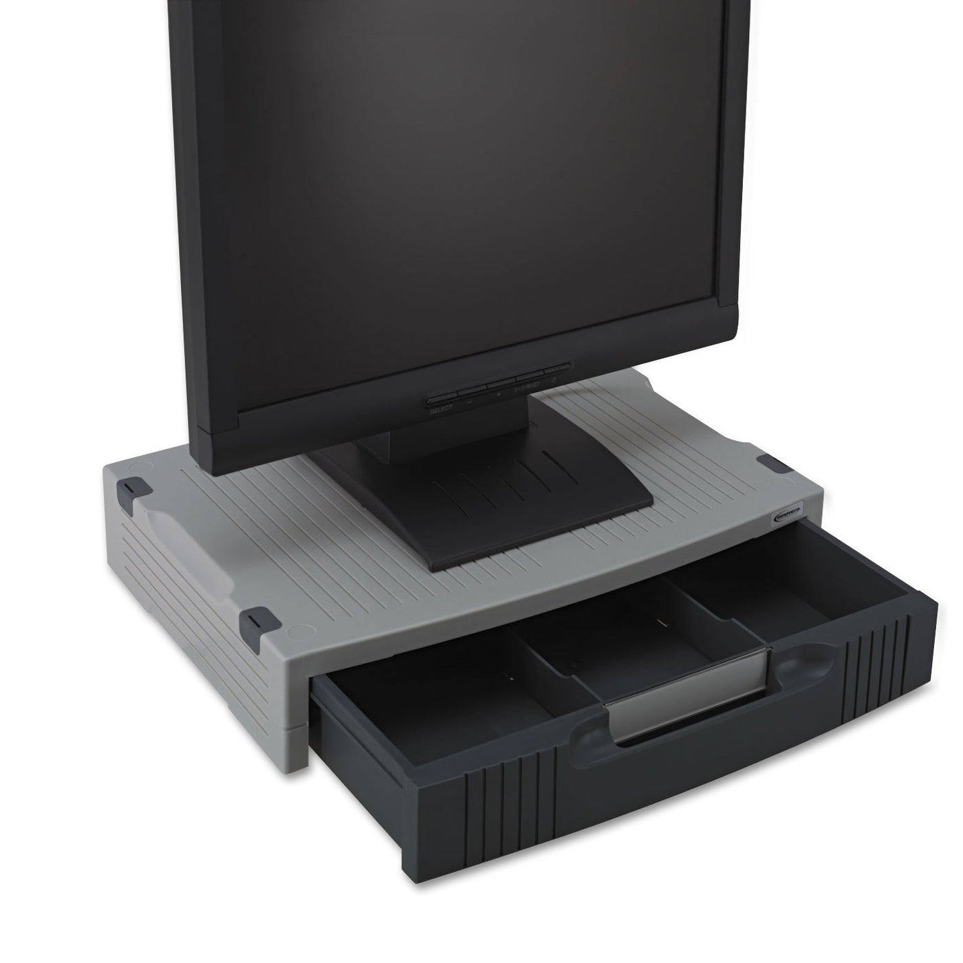 Elevates Lcd Monitor Or Printer To A Comfortable Level. Drawer Offers Extra Storage For Supplies. Nonskid Rubber Feet Protects Surface. Elevated Platform Surface Raises Lcd Monitor Or Printer Off Desktop. Buy More Than One And Stack For Increased Storage Capacity. Accessory Drawer With Adjustable, Removable Drawer Dividers Offers Extra Storage For Supplies. Nonskid Rubber Feet. Global Product Type: Desktop Stand-Monitor; Stand Type: Monitor; Width: 15 In; Depth: 11 In.