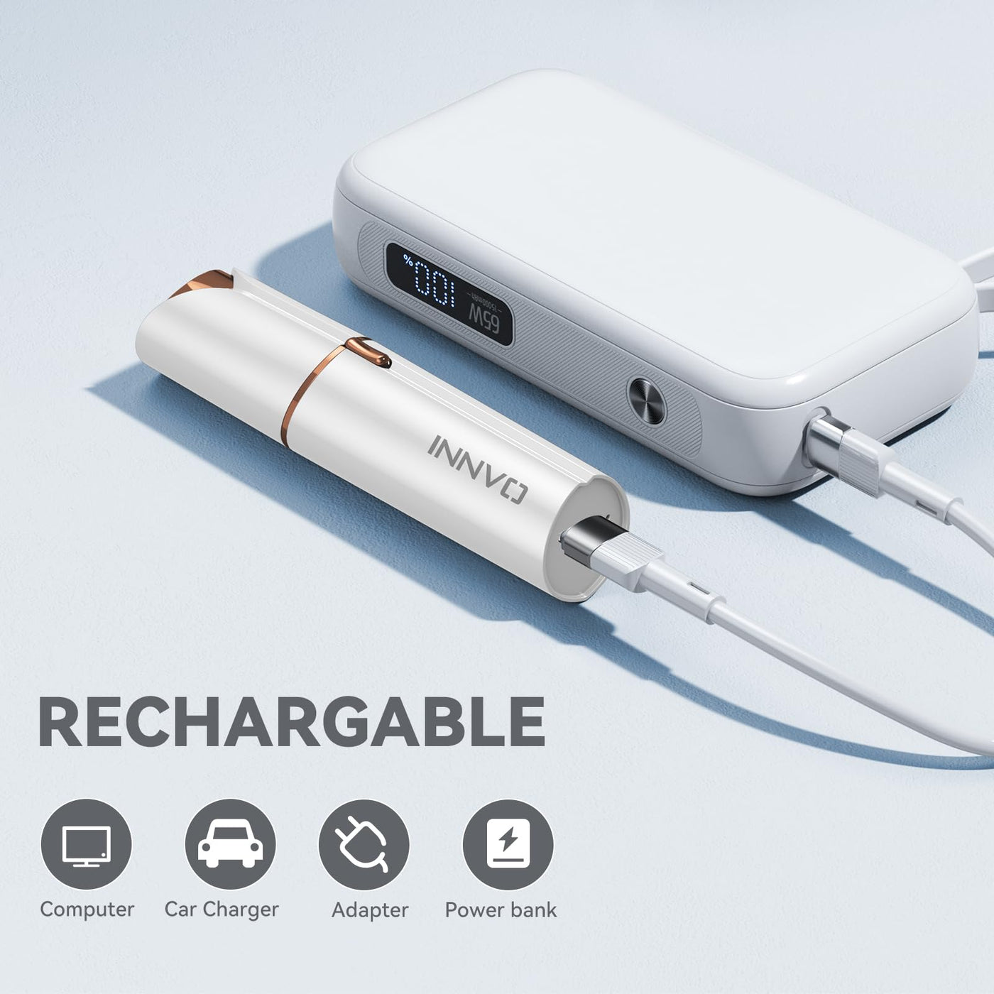 Innvo Facial Hair Remover For Women Ladies Upper Lip Hair Removal Electric Face Shaver With Rechargeable Battery Brush (White Wi