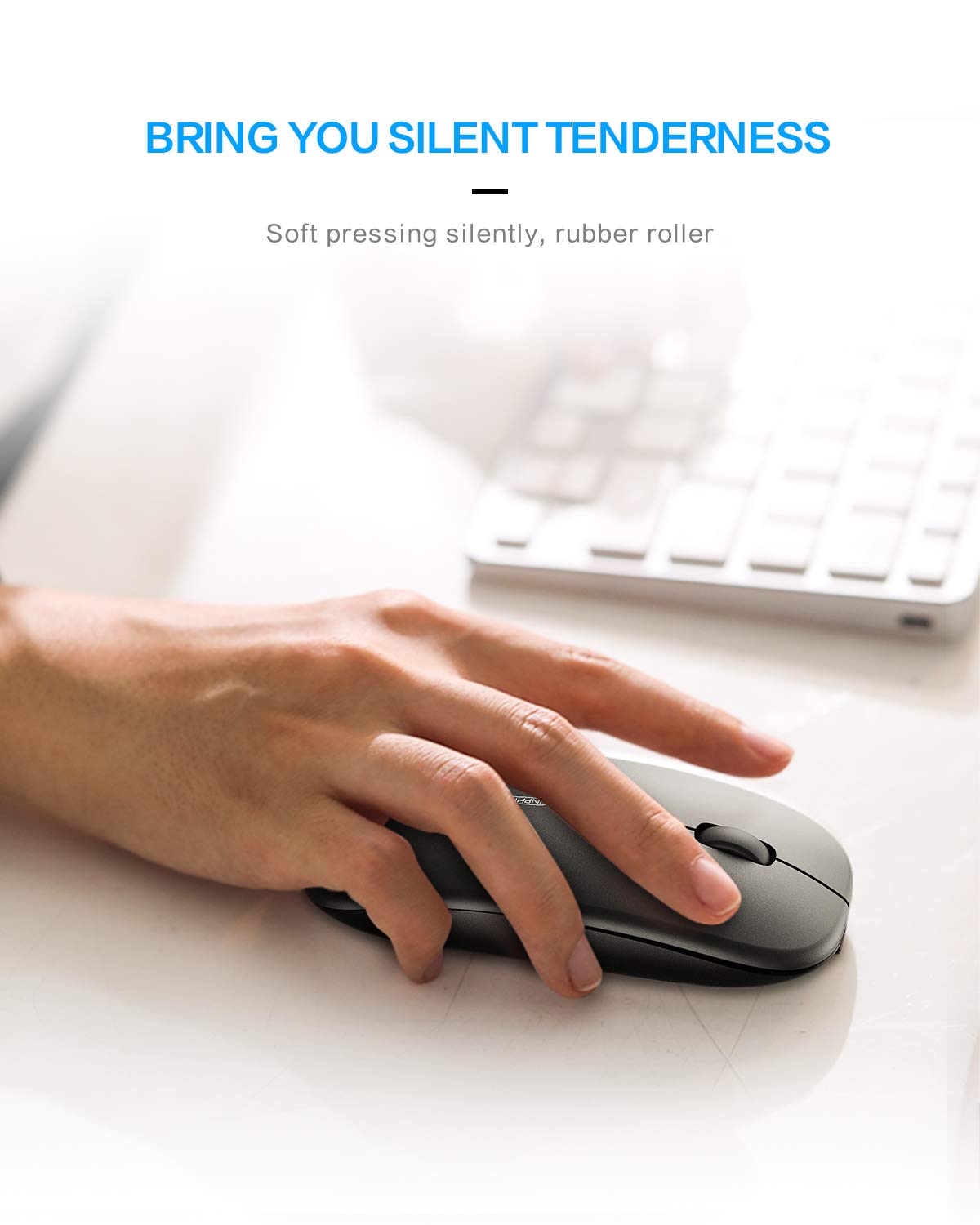 Inphic Wireless Mouse, 2.4G Silent Rechargeable Ultra Slim Usb Portable Mouse, 1600 Dpi & 400Mah Battery With Visible Level For