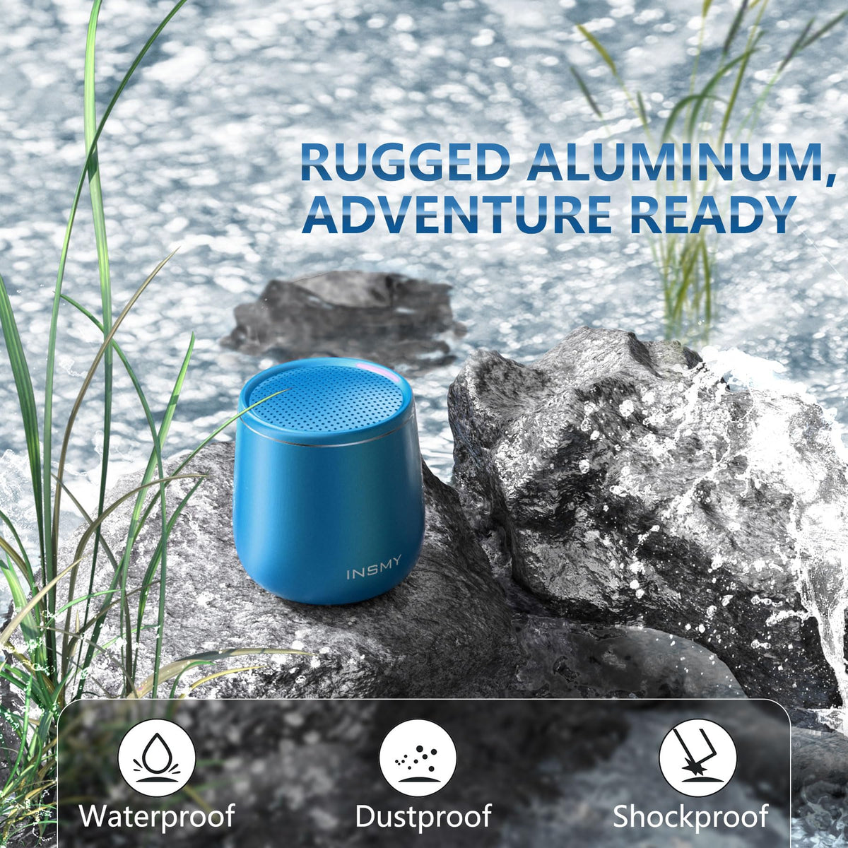 Insmy Small Bluetooth Speaker, Waterproof Mini Portable Wireless Speaker, Punchy Bass Rich Audio Stereo Pairing, Handheld Pocket Size, Built In Mic For Hiking Gift Laptop Tablet (Blue)