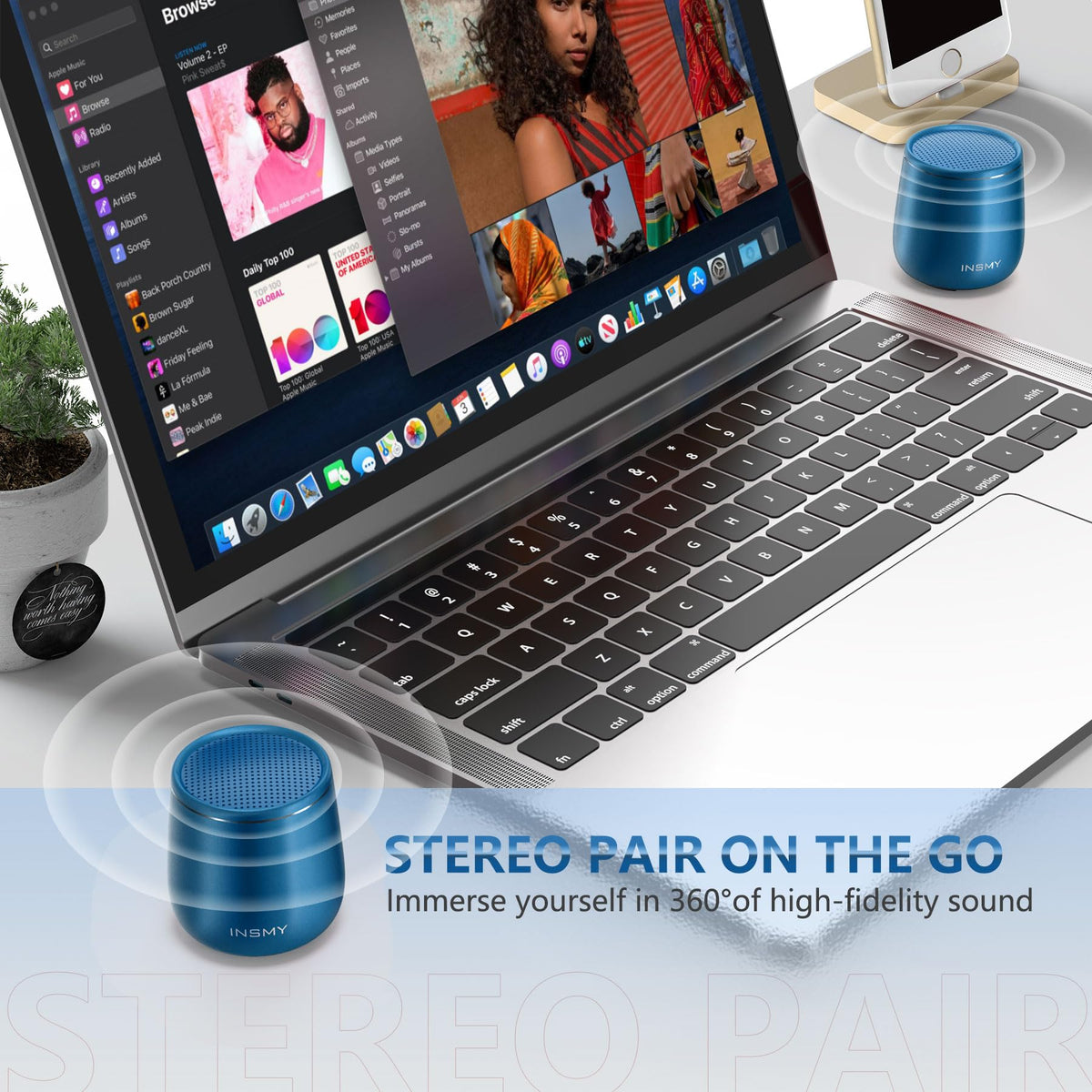 Insmy Small Bluetooth Speaker, Waterproof Bluetooth Mini Speakers Bluetooth Wireless Mini Portable Wireless Speaker, Punchy Bass Rich Audio Stereo Pairing, Handheld Pocket Size 10H Playtime Bluetooth 5.0 Built-In Mic For Hiking Biking Gift Laptop Tablet