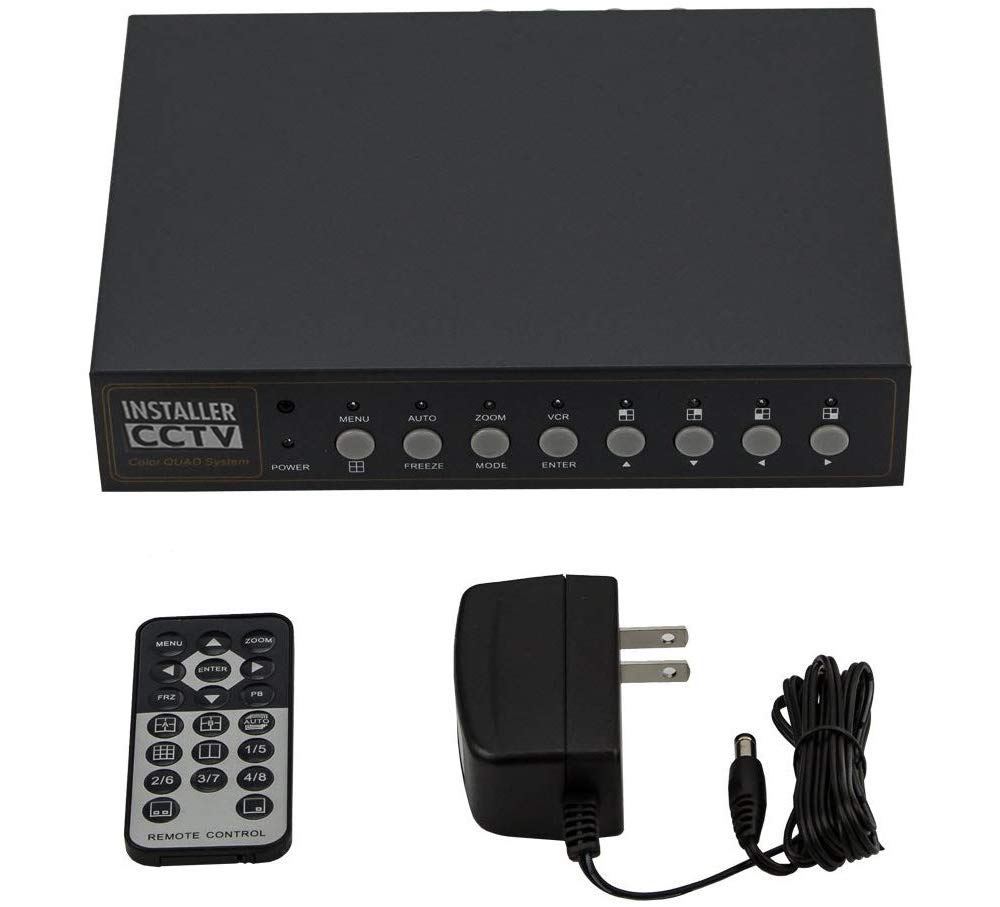 Installer Cctv 4Ch Video Color Quad Multiplexer With Loopout, Remote Control And Free 1 Amp Power Adapter