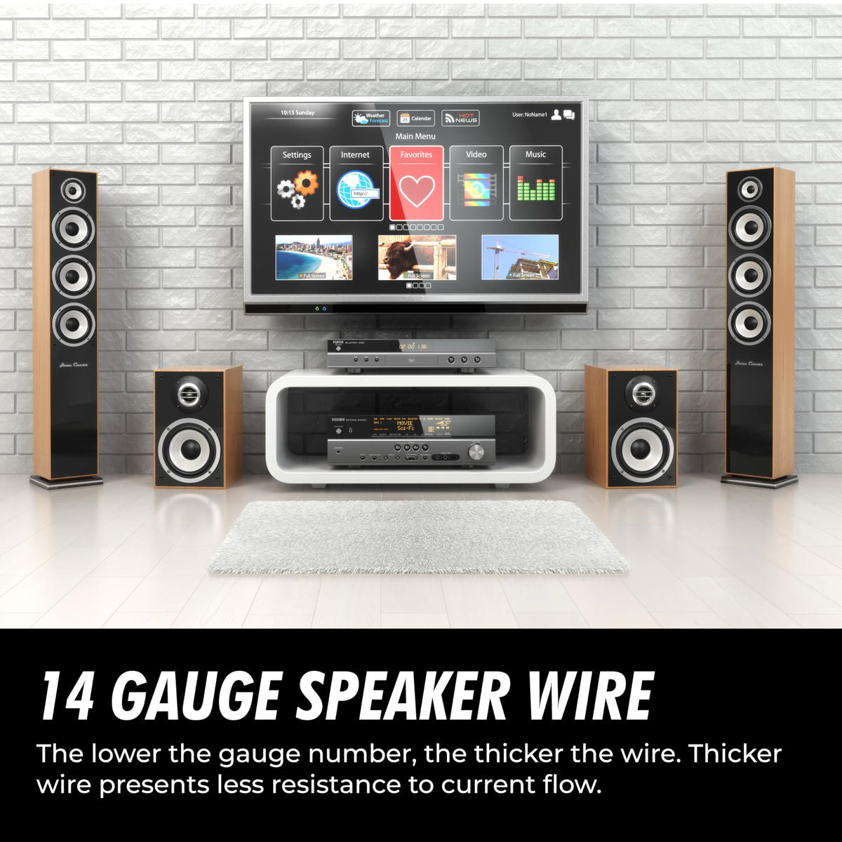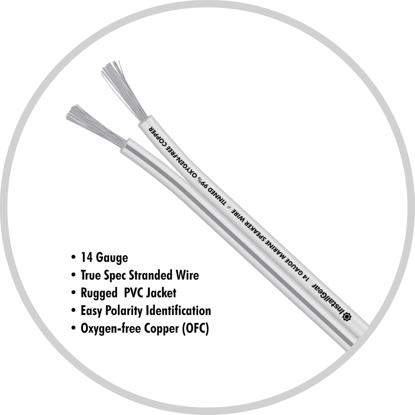 Q: What is the gauge of the InstallGear marine speaker wire and why is it important?A: The InstallGear marine speaker wire is 14 gauge. A lower gauge number indicates a thicker wire, which presents less resistance to current flow. Thicker wire can carry more current, making it ideal for high-performance audio systems.