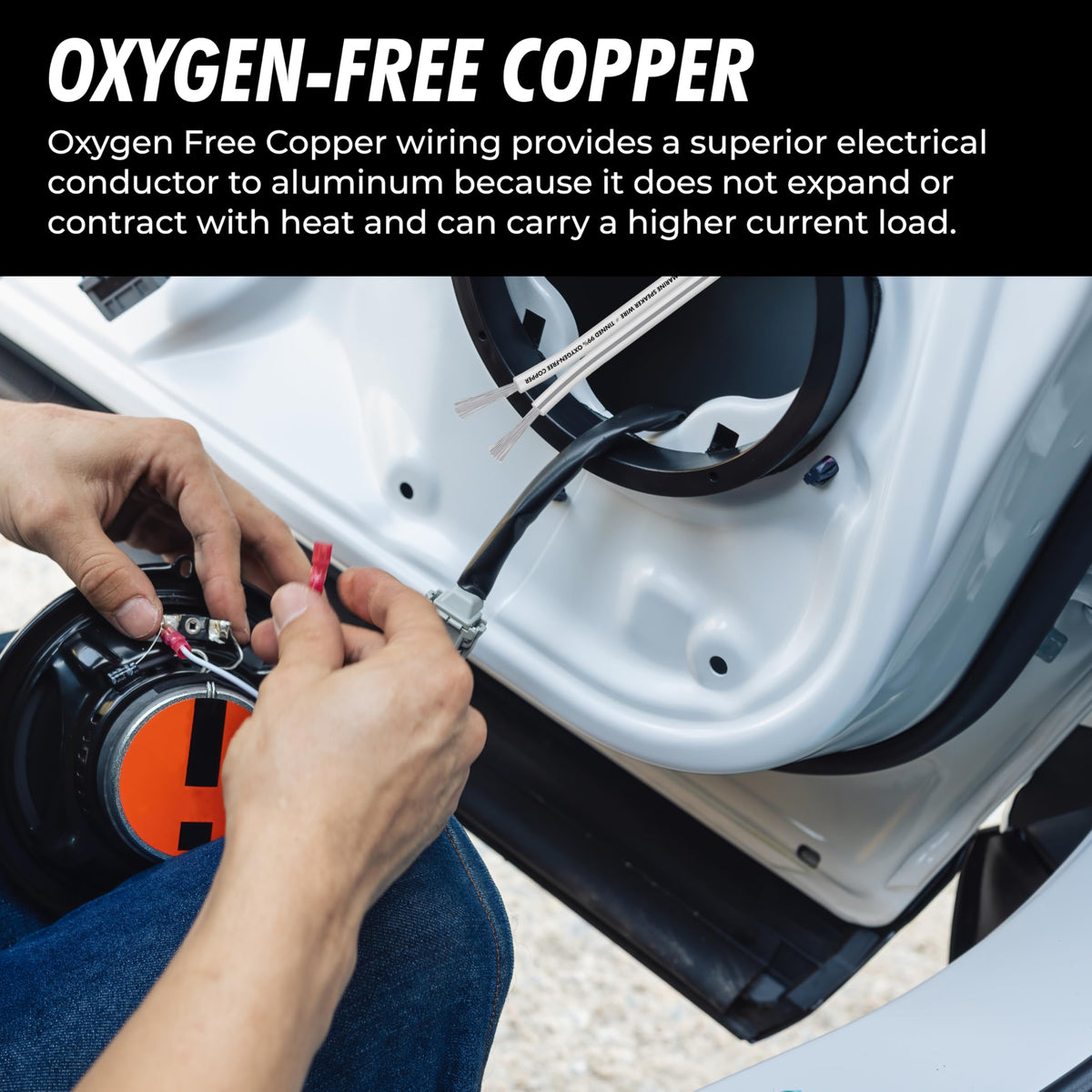 Q: How does the tinned oxygen-free copper (OFC) enhance the performance of this speaker wire?A: Tinned oxygen-free copper (OFC) wiring offers superior conductivity compared to aluminum. The tin coating prevents corrosion, ensuring a reliable connection and improved performance over time, especially in humid or salty marine environments.