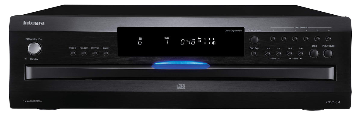 The Integra Cdc-3.4 Is A High Performance Cd Player In The Form Of A 6-Disc Carousel Changer, Housed In An All Steel And Aluminum Anti-Resonant Chassis For Higher Fidelity Performance Capability. Its Soft Blue Light On The Face Is Continually Attractive Day Or Night And Serves To Illuminate The Carousel Tray In The Dark To Make Disc Exchange Simple From The Cd Wells Which Are Also Numbered For Your Convenience. 5 Discs Can Be Swapped Out While The 6Th Disc Continues To Play. Direct Access To Disc Or Disc Track, As Well As Random Track Playback Are Available