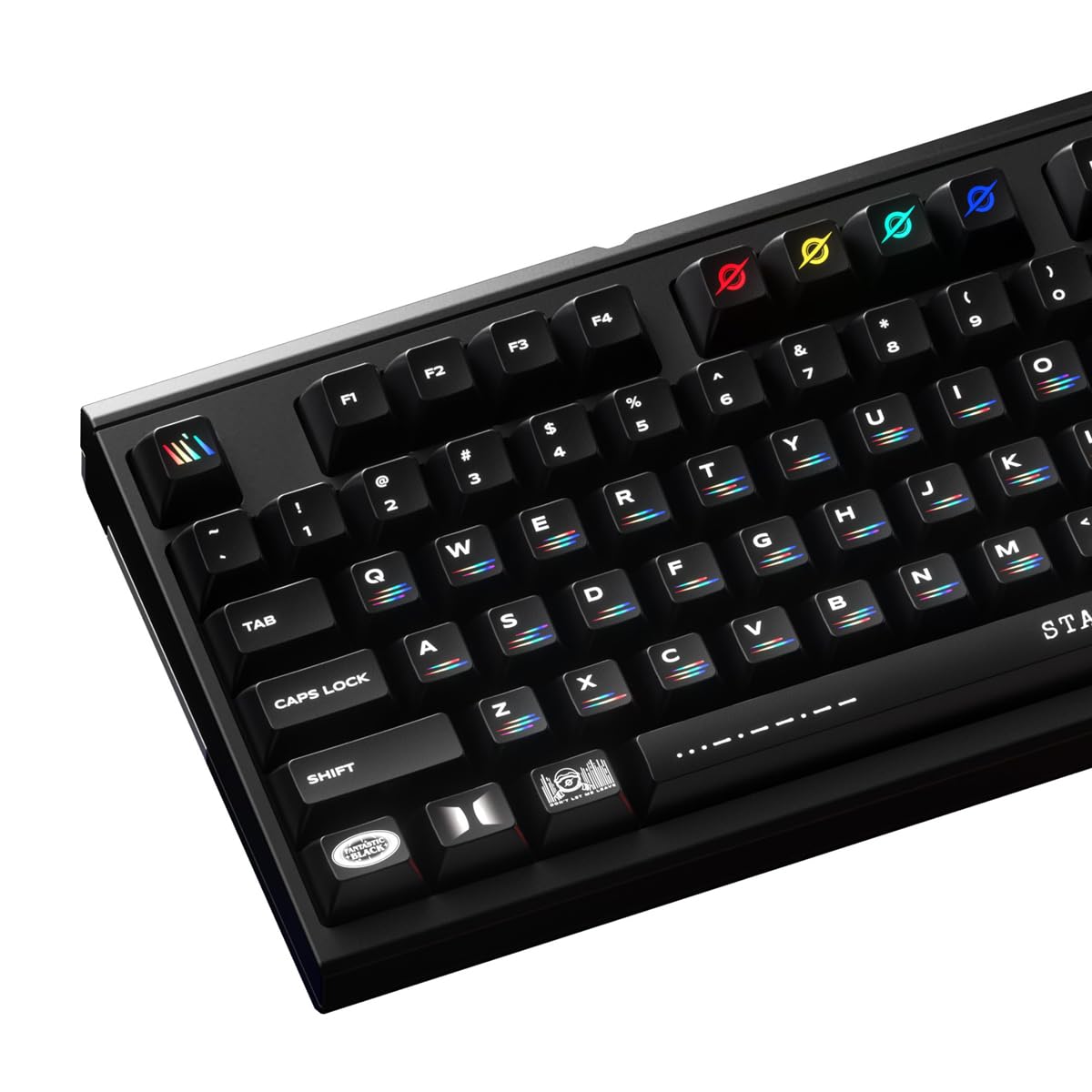 Q: Are these keycaps compatible with my mechanical keyboard?A: Yes, the Interstellar Theme keycaps are designed to fit Cherry MX switches and are compatible with various keyboard layouts, including 61, 87, 104, and 108 keys. Please ensure that your keyboard meets Cherry specifications before purchasing.
