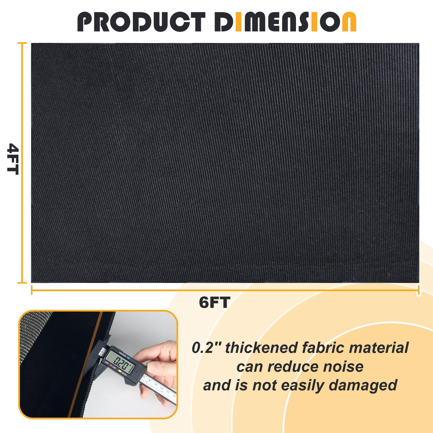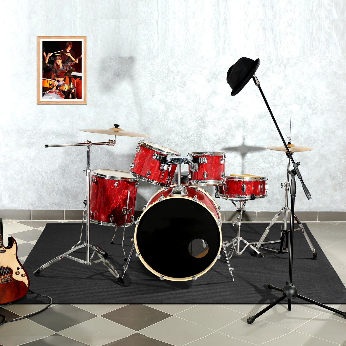 Invech 4 X 6 Ft Drum Rug, Black Drum Mat With Non Slip Grip Bottom, Soundproof Drum Floor Mat For Electrical Drum, Drum Accessor