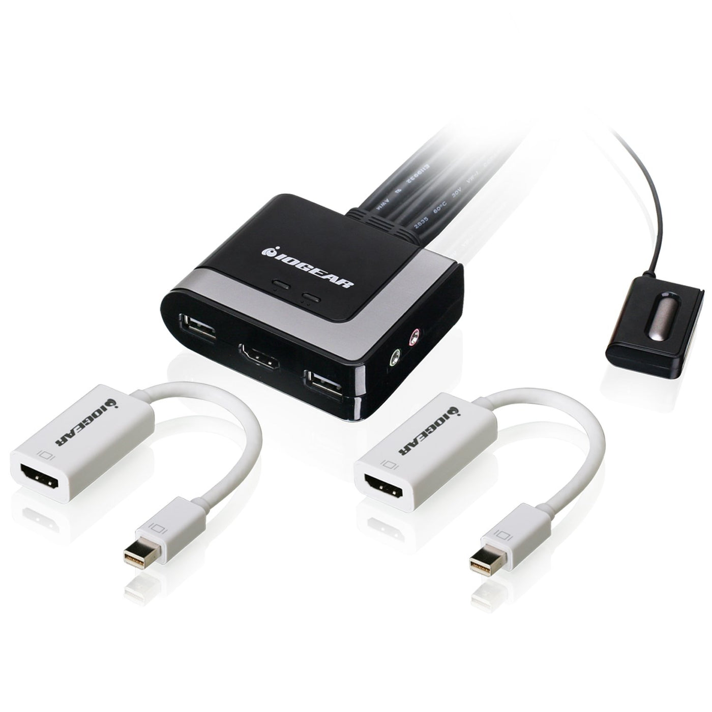 Iogears Hd And Mini Displayport Kvm Solution Enables Effortless Control Over Two Computers Using A Single Usb Keyboard, A Usb Mouse And A Monitor With Hdmi Connection Or Hdtv. This Bundle Is Perfect For A Home Office Or Small / Medium Size Business, As It Offers The Flexibility Of Choosing Between Hdmi And/Or Mini Displayport Connections. Take Advantage Of Your Existing Computers, And Use The Included Mini Displayport Adapters To Display Your Content On A Large Hdmi Display Or Hdmi Projector. The Advanced 2-Port Hd Cable Kvm Is Hdcp Compliant And Supports 720P Or 1080P Hd Resolutions On Large Or Widescreen Monitors With Hdmi Connections, Required In Environments Such As: Desktop Publishing / Graphic Design / Video Editing, Digital Home Entertainment And High-End Gaming, Where High Video Resolution (1080P Hd) Is Demanded Also, The Included Mini Displayport To Hdmi Adapter Supports The Displayport 1.1A Standard, Giving You The Ability To Send High Resolution Video Up To 1920X1200 To Your External Hdmi Display Or Projector. For Added Accessibility, The Cable Hd Kvm Features Usb 2.0 Peripheral Sharing Via The Mouse Port; Connect A Powered Usb Hub To Expand Your Usb Connectivity. Simply Connect Your Microphone And Set Of Powered Speakers To The Kvm Switch And Enjoy Rich Bass In Surround Sound From The Connected Computer. The Hd - Displayport Cable Kvm Bundle Is A Simple Plug-N-Play Out-Of-Box Solution, Including All The Necessary Cabling Required To Fit Your Needs. The 2-Port Hd Cable Kvm Switch With Audio Is A Simple Plug-N-Play Out-Of-Box Solution, Including All The Necessary Cabling Required To Fit Your Needs. It Offers A Cost-Effective Solution To Increase Security By Allowing Users To Switch Between The Internet Connected Pc And An Intranet Connected Pc. This Hdmi Kvm Switch Works Seamlessly With Multiplatform Os Such As Windows, Mac Os, Oracle, And Linux.
