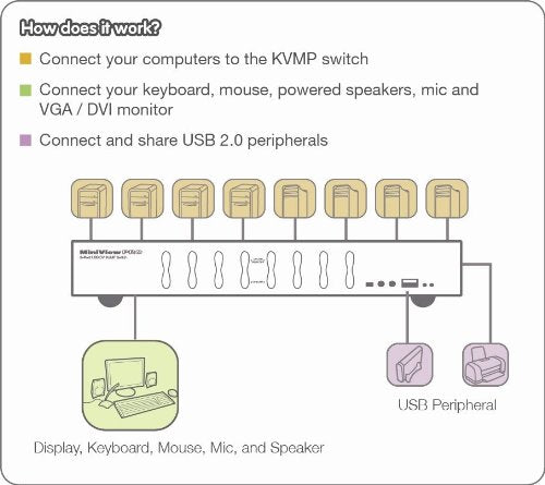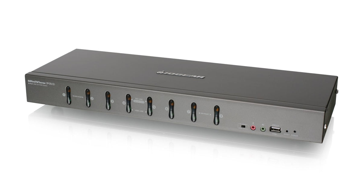 From The Manufacturer The Iogear Eight-Port Usb Dvi Kvmp Switch Is A Control Unit That Allows Access And Control Of Up To Eight Computers From A Single Usb Keyboard, Usb Mouse, And Either A Dvi Or Vga Monitor Console. It Can Be Cascaded To Three Levels--Allowing Up To 73 Gcs1108S To Control Up To 512 Computers--All From The Original Single Console. In Addition, Gcs1108 Comes With Iogear S Video Dynasync Technology To Optimize The Display Resolution. Iogears Dynasync* Technology Reads And Remembers The Monitors Parameters (Edid) So There Is No Delay Or Change Of Video Resolution When Switching Between, Or Booting Computers.View Largerswitching Between Computers Can Be Easily Accomplished Either By Manually Pressing The Front Panel Push Buttons, Entering Hotkey Combinations From The Keyboard, Or Via On-Screen Display (Osd) System. A Convenient Auto-Scan Feature Permits Automatic Scanning And Monitoring Of Activities On All Connected Machines.Gcs1108 Provides 2.1 Stereo Audio And Microphone Support, As Well As Multimedia Keyboard Support.Works With The Following Kvm Cables: G2L7D02U, G2L7D03U, G2L7D05U, G2L7D02Ui, G2L7D03Ui, And G2L5102U.*Iogear S Dynasync Provides The Edid Support For Windows 7.Featuresone Usb Console Controls Eight Dvi Or Vga Computerssupports Digital (Dvi), Analog (Dvi) Video And Analog (Vga)Superior Video Quality: 1920X1200 (Single Link Dvi), 2048X1536 (Vga); Ddc2Supports Widescreen Resolutionsmultiplatform Support For Windows, Linux, Mac, And Suncomputer Selection Via Front Panel Pushbuttons, Hotkeys, And On-Screen Display (Osd)Includes Two Usb 2.0 Peripheral Sharing Portsindependent Switching Of Kvm And Usb Focustwo-Level (Administrator / User) Password Authorization For Enhanced Security Protectioncascadable To Three Levels Control Up To 512 Computersiogears Dynasync* Technology Reads And Remembers The Monitors Parameters (Edid) So There Is No Delay Or Change Of Video Resolution When Switching Between, Or Booting Computersaudio Enabled Full Bass Response Provides A Rich Experience For 2.1 Channel Surround Sound Systemscomplete Keyboard Emulation For Error-Free Bootingconsole Mouse Port Emulation/Bypass Feature Supports Most Mouse Drivers And Multifunction Micemac / Sun Keyboard Support And Emulation**Auto Scan Mode For Monitoring All Computersbroadcast Mode Allows You To Send Commands From The Console To All Computers To Perform Operations Simultaneouslyfirmware Upgradablehdcp Compatibleconsole Audio Ports On Front Panel For Easy Accessrequirementsthere Are Three Display Options: Option #1 Requires A Display With Both Dvi And Vga Connection*. Option #2 Requires A Display With Dvi-I Connection. Option #3 Requires One Dvi And One Vga Display.A Usb Keyboard And Mouse Are Also Required.Supported Operating Systemswindows Xp, Windows Vista (32-Bit / 64-Bit)Windows 7 (32-Bit / 64-Bit)*Windows 7 (32-Bit / 64-Bit)*Mac Os X V10.3.9 Or Latersun Solarislinux*Iogears Display Emulation Technology Provides The Edid Support For Windows 7.**Note: Pc Keyboard Combinations Emulate Mac / Sun Keyboards; Does Not Emulate Mac / Sun Keyboard To Pc Keyboard. Product Description The Iogear 8-Port Usb Dvi Kvmp Switch Is A Control Unit That Allows Access And Control Of Up To 8 Computers From A Single Usb Keyboard, Usb Mouse And Dual-Monitor (Dvi-I And Vga) Console. It Can Be Cascaded To Three Levels - Allowing Up To 73 Gcs1108S To Control Up To 512 Computers - All From The Original Single Console. In Addition, Gcs1108 Comes With Iogears Video Dynasync Technology To Optimize The Display Resolution. Iogears Dynasync Technology Reads And Remembers The Monitors Parameters (Edid) So There Is No Delay Or Change Of Video Resolution When Switching Between, Or Booting Computers. Switching Between Computers Can Be Easily Accomplished Either By Manually Pressing The Front Panel Push Buttons, Entering Hotkey Combinations From The Keyboard, Or Via On-Screen Display (Osd) System. A Convenient Auto-Scan Feature Permits