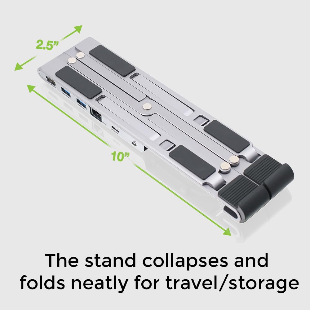 Iogear Dock Pro 6-In-1 4K Dock Stand, Foldable Laptop Stand With Docking Station, Hdmi 4K30Hz (3440X1440 60Hz), 2X Usb-A, Usb-C