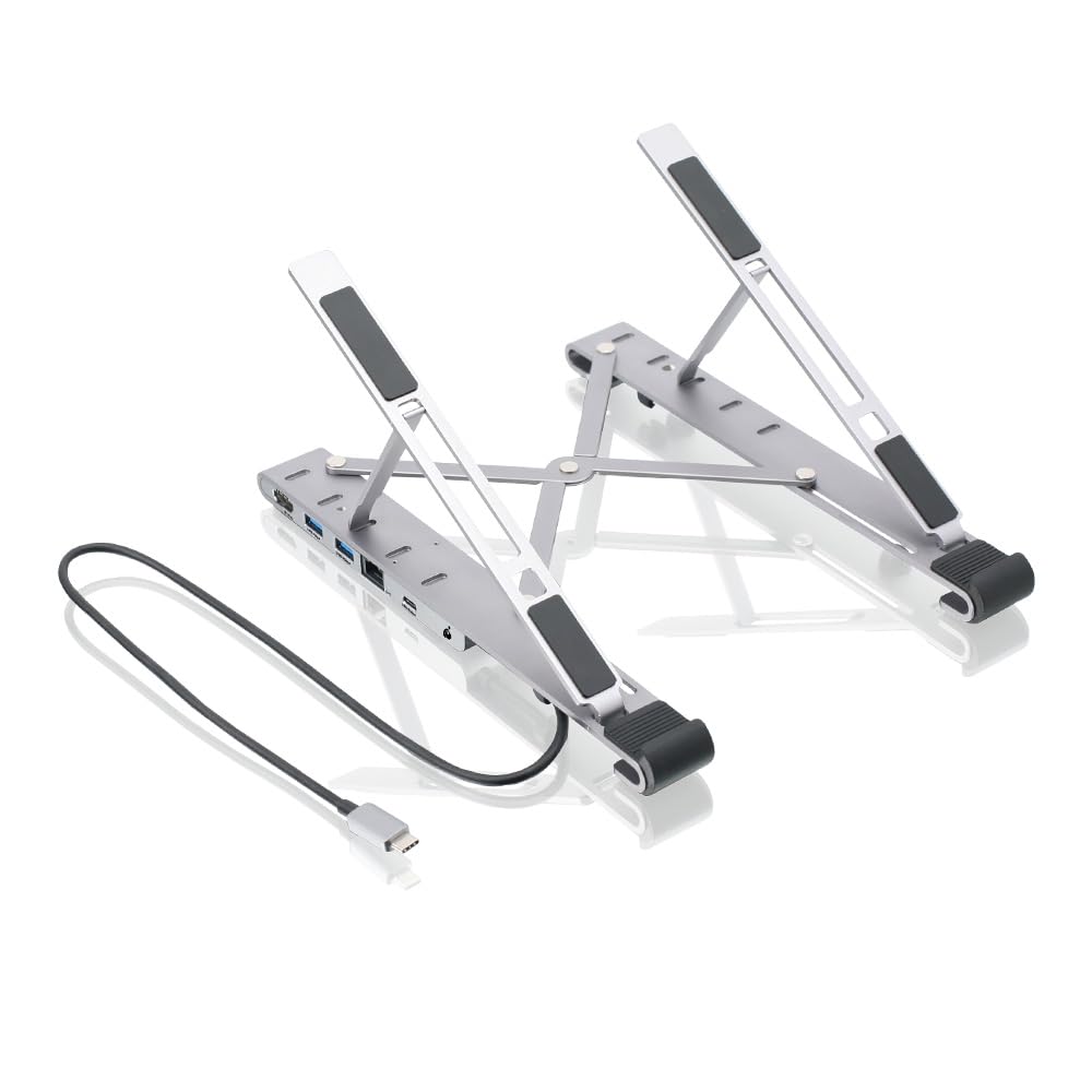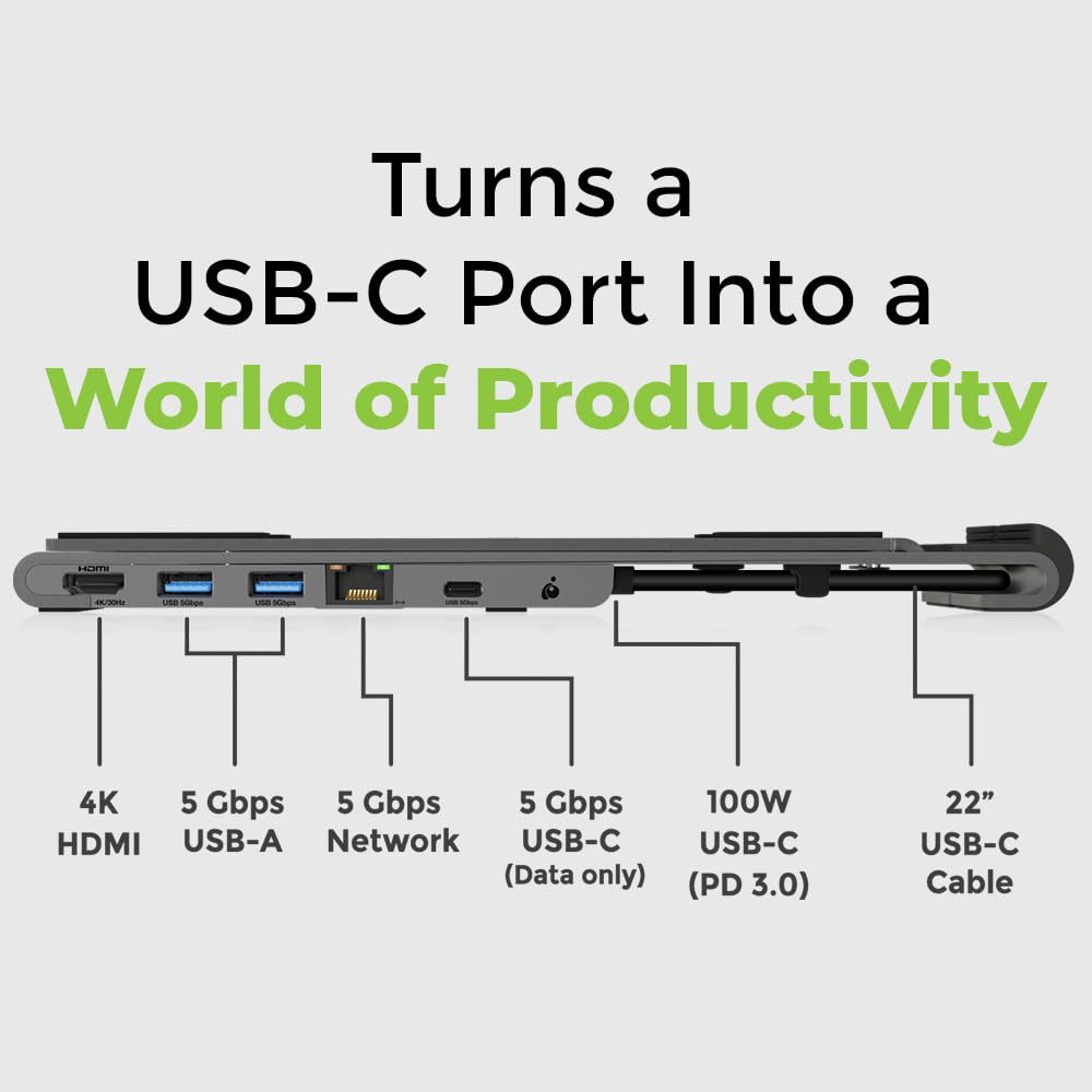 Innovative Compact Usb-C Docking Station And Laptop Stand (Pc Or Mac) Iogears New 6-In-1 Multi-Functional Laptop Stand/Usb-C Hub Extends One Usb-C Port To Six Useful Ports: 1X Hdmi, 2X Usb-A, 1X Usb-C For Data, 1X Usb-C For 100W Charging And 1X Gigabit Ethernet Port. Organize All Your Peripherals With This Streamlined Laptop Stand. And There Is Only One Cable From The Base To Your Laptop - Easy To Disengage.Multiple Ports Connect Multiple Devices With Two Usb-A Ports, One Usb-C Port For Data, One Usb-C Port For Pass-Through Charging, And Rj45 Ethernet Port. Mirror Or Extend A Monitor For Windows And Mac.Power Your Laptop Charge Your Laptop While Docked With The Usb-C Power Pass-Through Port And Usb-C Power Adapter*. *Power Adapter Is Not Included. Recommended Power - Max 100W, For Recommended Power Output Refer To Laptop Details.Lightweight And Portable Lightweight, Weighing Just .65 Lbs (.3 Kg). The Stand Collapses And Folds Neatly For Travel/Storage With Attached Usb-C Cable Secured Neatly In The Stands Base When Not In Use. Additionally, Small Magnets Secure The Closed Position. The Docking Station Supports All Standard Laptop Sizes And Up To 11 Lbs (5 Kgs).