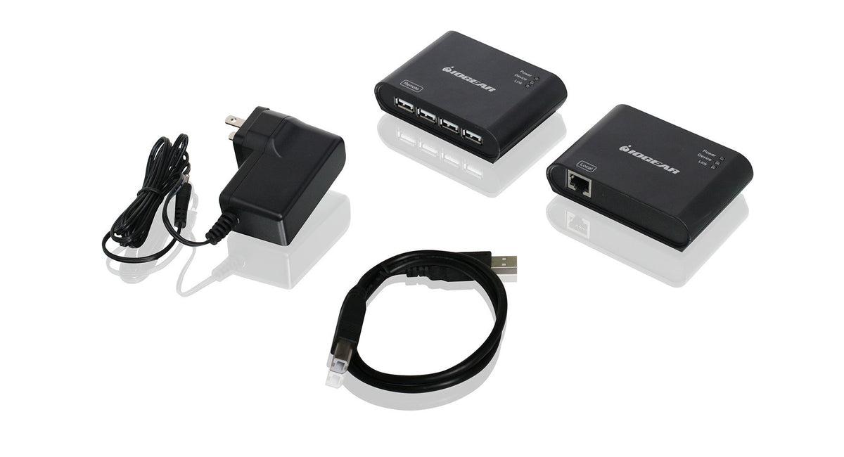The Iogear Usb 2. 0 4-Port Boost Linq Ethernet Combines A Usb Extender And A Usb Hub To Allow Connecting As Many As Four Usb 2. 0 (And/Or Usb 1. 1) Devices From Up To 164 Feet Away From Your Computer. Connected Devices Still Maintain A High-Speed Data Transfer Rate Of Up To 480Mbps, While Operating From A More Convenient Location. The Usb 2. 0 4-Port Boost Linq Ethernet Converts A Usb 2. 0 Or Usb 1. 1 Connection To Rj-45, And Sends The Usb Data Over Common Cat5, Cat5E Or Cat 6 Ethernet Cable Up To A Distance Of 164 Feet (50 Meters). The Usb 2. 0 4-Port Boost Linq Ethernet Is Considered An Active Repeater, Using A Small Power Supply To Amplify The Usb Signal And Preserve The Integrity Of The Data Over Long Distances. The Power Supply Also Helps Maintain Enough Current To Power Any Connected Usb Devices Such As Webcams, Hard Drives, Etc. The Usb 2. 0 4-Port Boost Linq Ethernet Kit Includes A Local Unit, A Remote Unit And A Power Supply. The Local Unit Connects Directly To Your Computer While The Remote Unit Connects With Up To Four Usb Devices. The Local And Remote Units Are Connected To Each Other With Cat5, Cat5E, Or Cat6 Ethernet Cabling (Not Included) Up To A Maximum Length Of 164 Feet (50 Meters). The Guce64 Is Simple To Set Up And Requires No Additional Drivers To Install. Designed With Classrooms, Labs, Offices And Conference Rooms