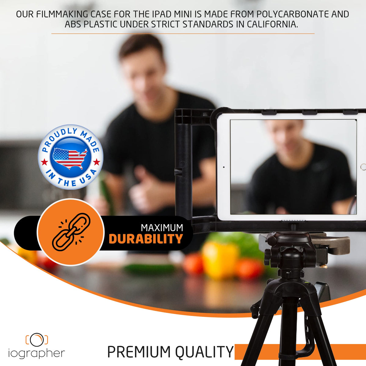 Patented And Ergonomic Design: Iographer Case W/ Handles Has Patented Ergonomic Design & Versatile Features For Expanding Ipad'S Filming Capabilities. Ideal For Vlogging, Youtube, Filming Projects, Or Adventures. Attach 37Mm Lens, Mic & Led Light For Professional-Quality Stills & Videos. | Quick And Easy Setup Ipad Case: Remove And Attach An Ipad Quickly Using The Case'S Easy-In/Easy-Out Clip System. With Plenty Of Room For Attachments And Accessories (Sold Separately), Such As An Ipad Tripod Mount For Video Recording, Mic, And 37Mm Lens, This Ipad Case With Handles For Tripod Becomes Ideal Equipment For Aspiring Filmmakers And Photographers. | Compatibility: Our Iographer Patented Ipad Case With Handles For Recording Works As An Ipad Mini 4Th Generation Case For Models A1538, A1550; Ipad Mini 5Th Generation Case For Models A2133, A2124, A2126, A2125; And Ipad Mini 6Th Generation Case For Models A2567, A2568. This Ipad Holder For Tripod Helps Maximize The Stability Of An Ipad Mini'S Recording Camera, Whether For Business, Athletics, Education, Filmmaking, Or Recreation. | For Aspiring Filmmakers And Photographers: The Iographer Ipad Case With Handles For Tripod Is Designed For Photography And Video Or Filmmaking Enthusiasts. It Offers An Excellent Solution For Anyone Who Wants To Make A Great Video Quickly And Easily Using Their Ipad Mini. Attach The Ipad Mini Case To An Ipad Tripod Adapter And Other Accessories For Smooth And Stable Videos. | Made In The Usa: Iographer Is A Family-Owned Business Located In Ca. Our Filmmaking Case For The Ipad Mini Is Made From Polycarbonate And Abs Plastic Under Strict Standards In California. The Patented Ipad Case Is Compatible With The Ipad Mini 4Th, 5Th, And 6Th Gen Models. Easily Expand An Ipad'S Video And Filming Capabilities With Multi-Mount Options, Including This Ipad Handle Case To Record.