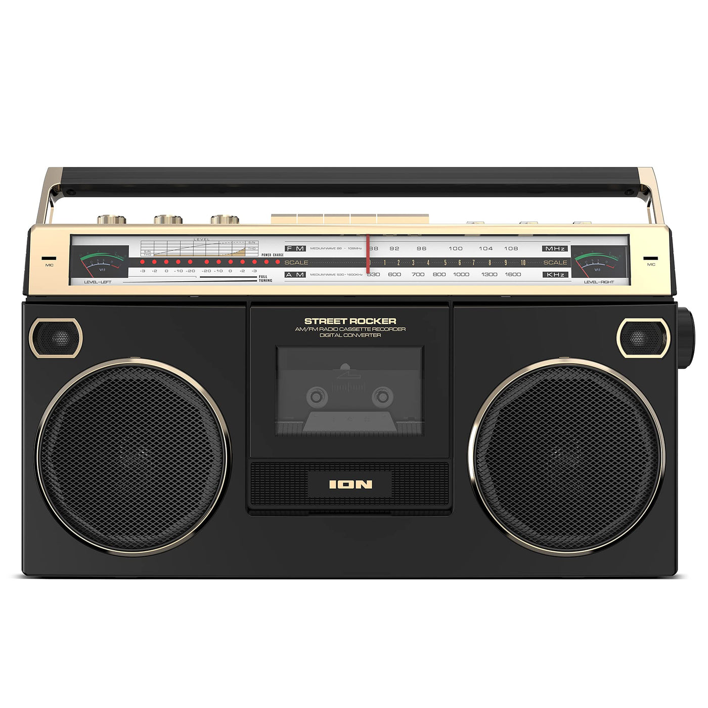 Ion Audio 1980S Style Portable Bluetooth Boombox Am/Fm Radio Cassette Player Recorder, Vu Meters, Usb Recording, Dual Full Range