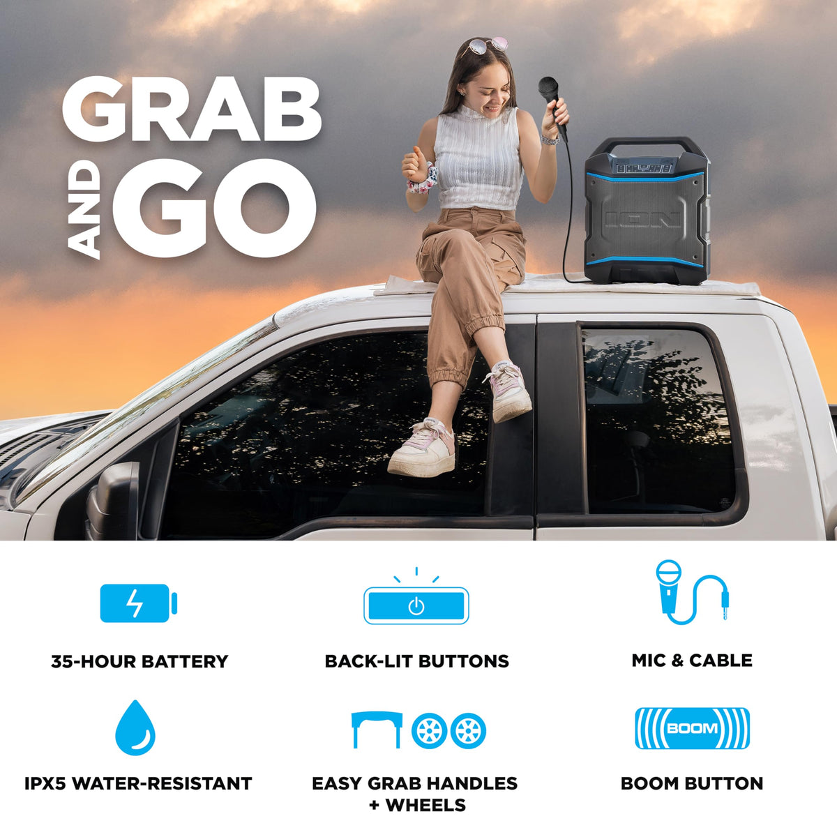 Ion Block Rocker Portable Bluetooth Outdoor Party Speaker With Karaoke Microphone, Battery, 4 Speakers, Radio, Usb Port, App,