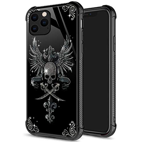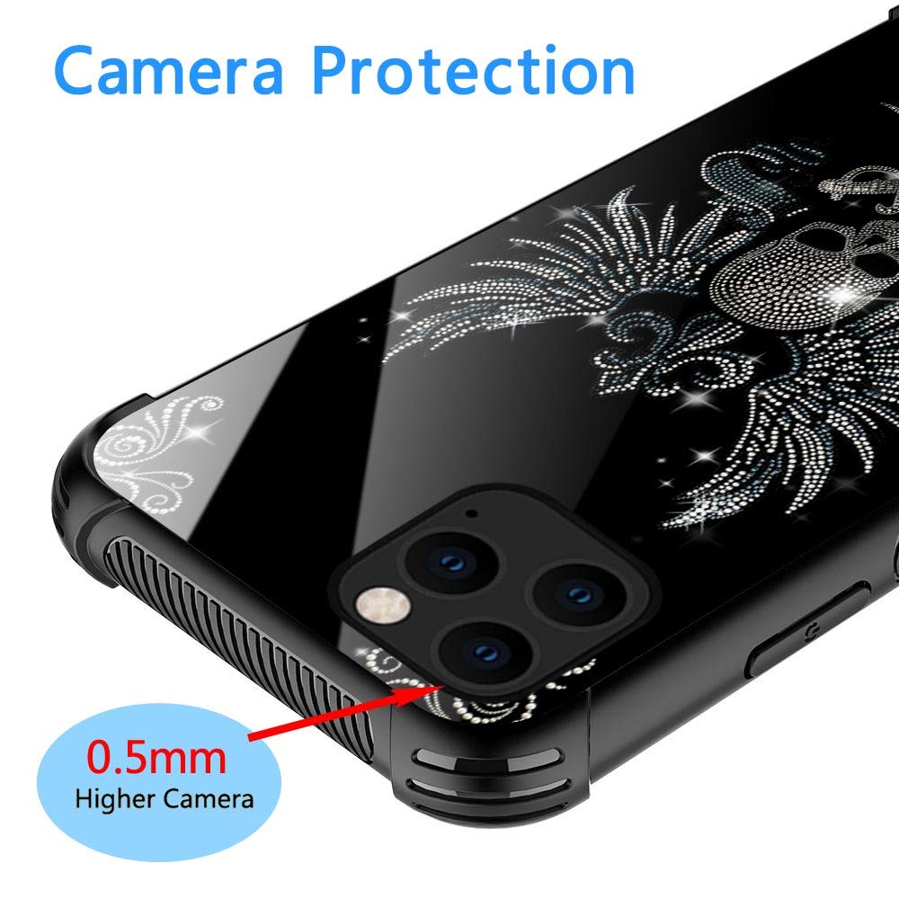 Iphone 11 Case,9H Tempered Glass Iphone 11 Cases Diamond Skull For Girls Womens, Pattern Design Shockproof Anti Scratch Case For