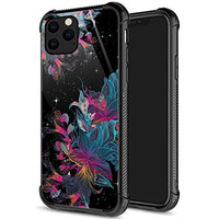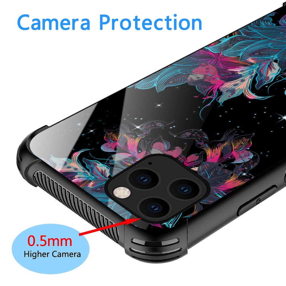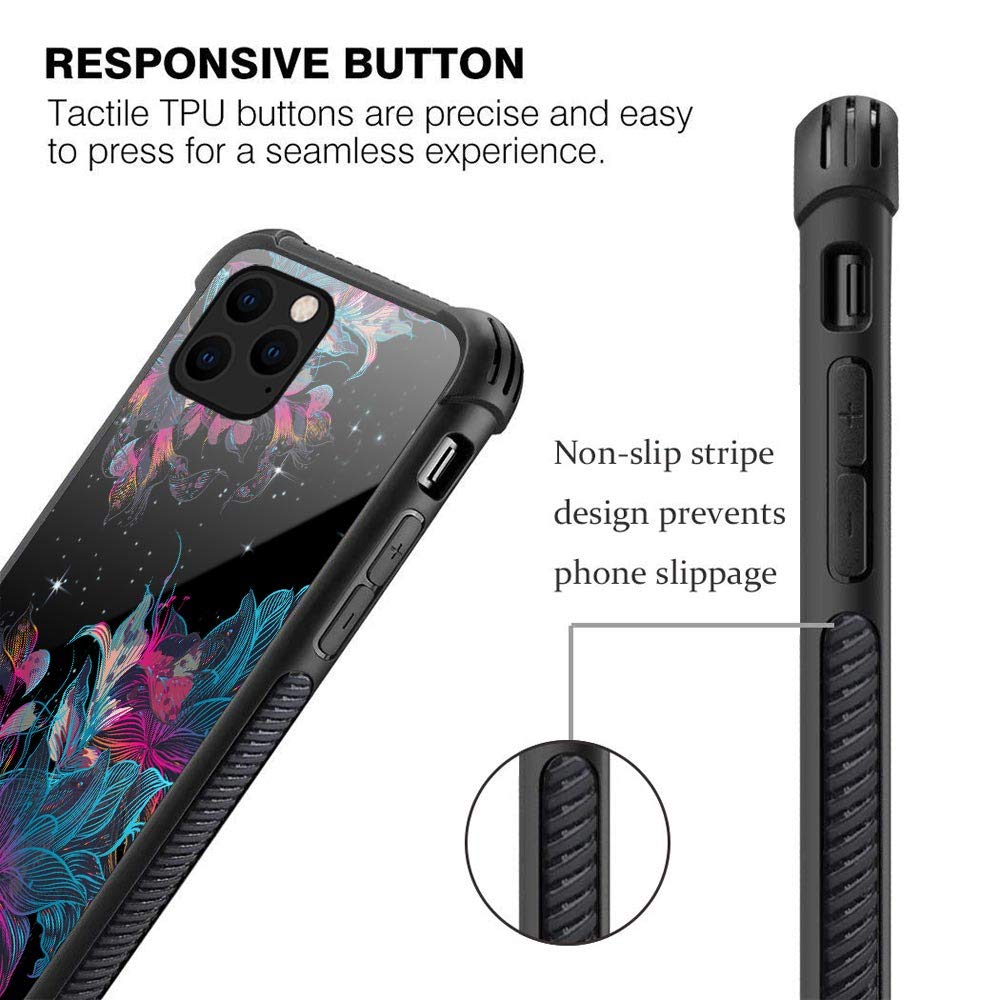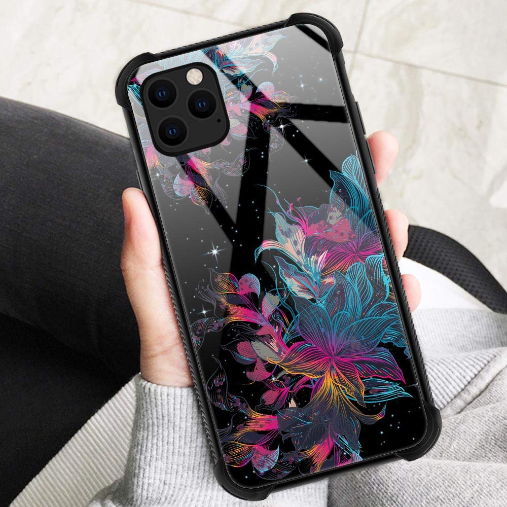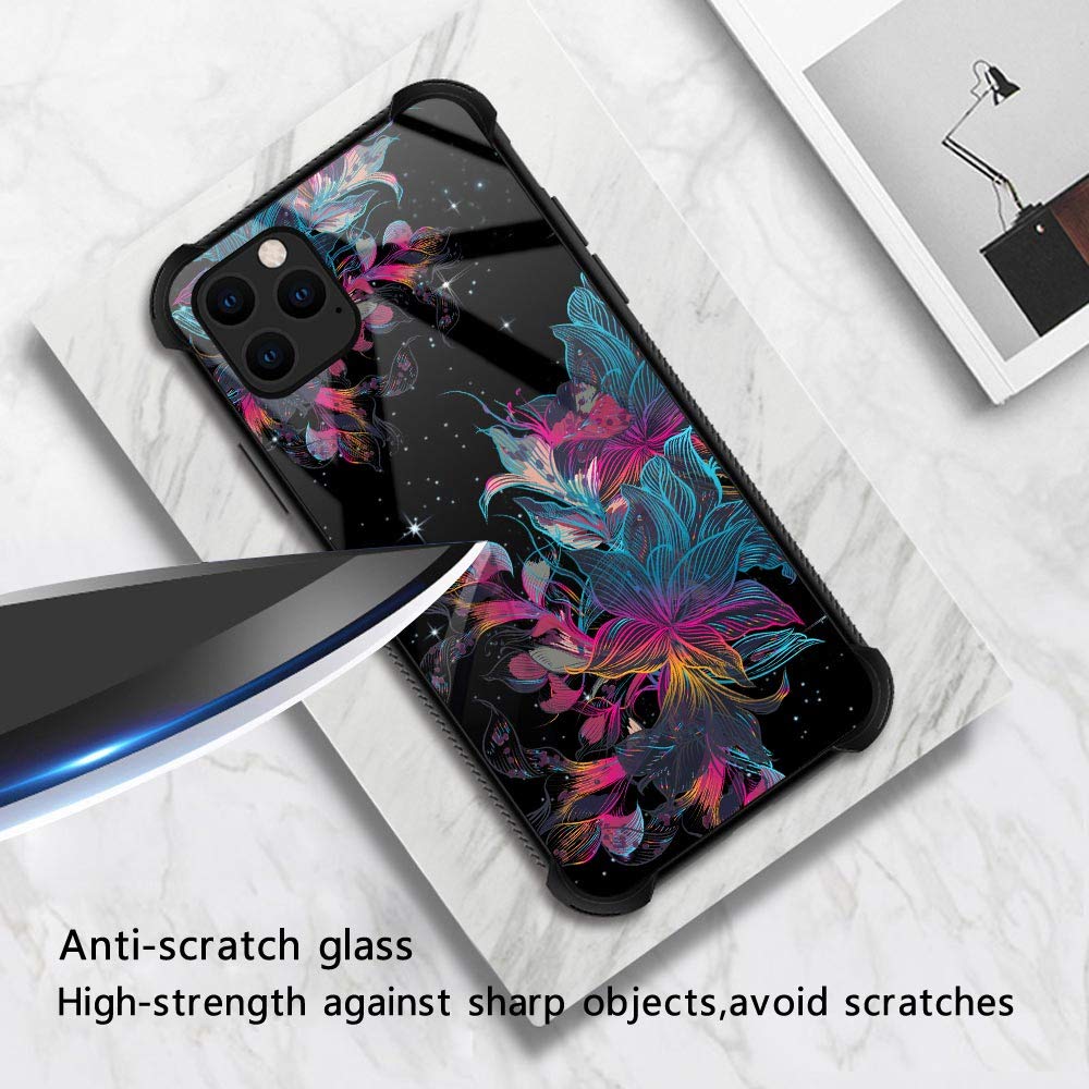 Iphone 11 Case,9H Tempered Glass Iphone 11 Cases Purple Blue Flowers For Girls Womens, Pattern Design Shockproof Anti Scratch Ca
