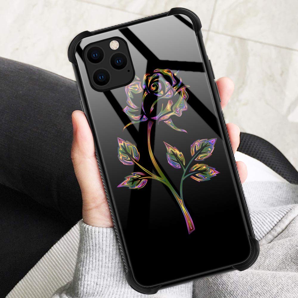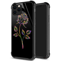 Iphone 11 Pro Case,9H Tempered Glass Iphone 11 Pro Cases Chromatic Gold Rose For Girls Womens, Pattern Design Shockproof Anti Sc