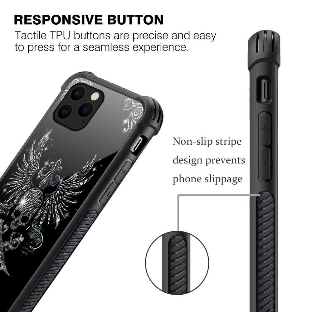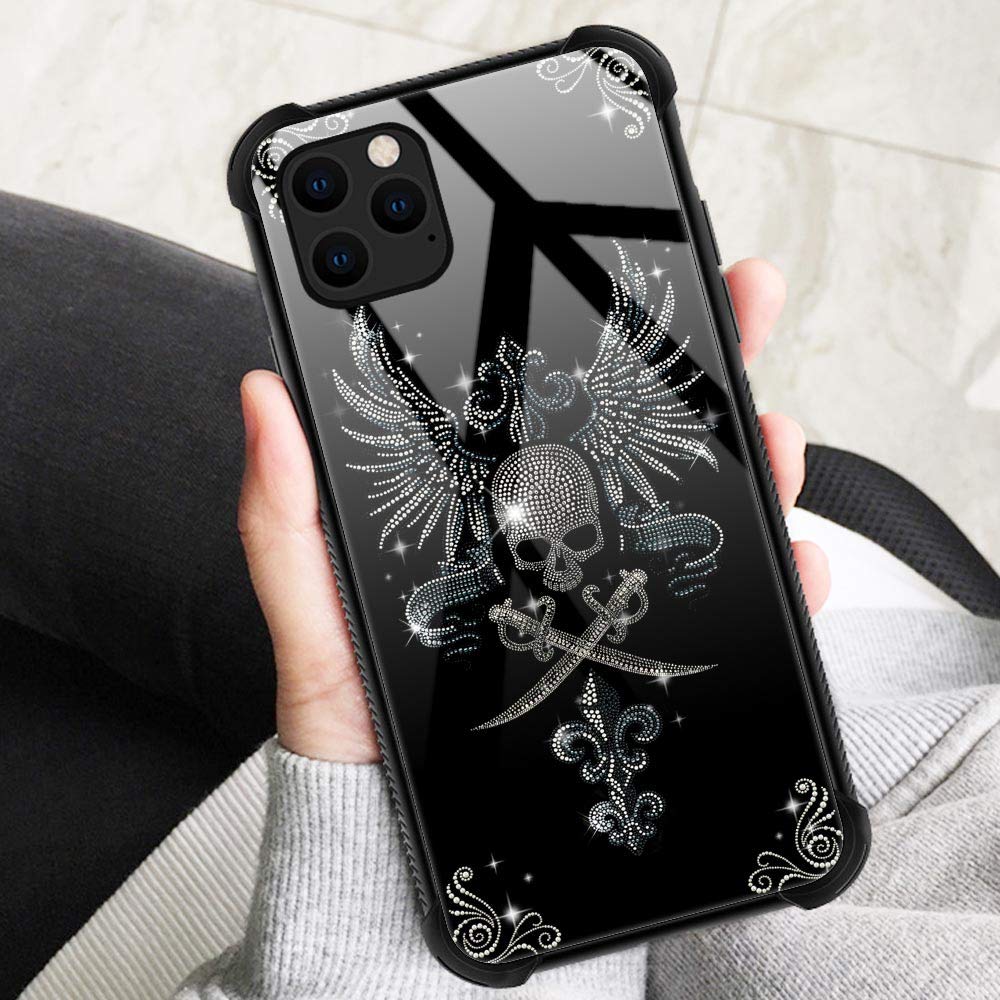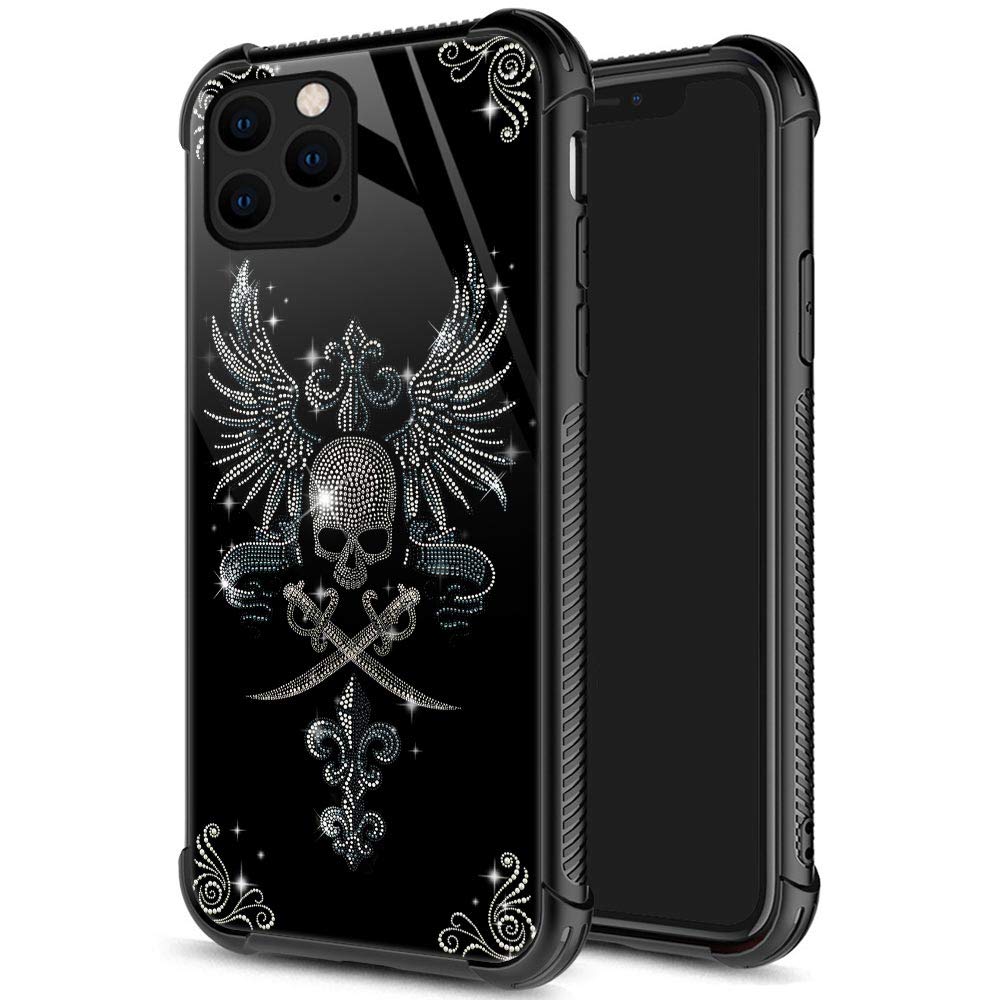 Iphone 11 Pro Case,9H Tempered Glass Iphone 11 Pro Cases Diamond Skull For Girls Womens, Pattern Design Shockproof Anti Scratch