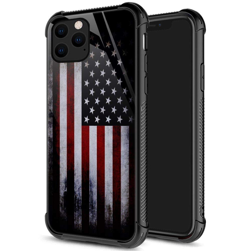 Iphone 11 Pro Max Case,9H Tempered Glass Iphone 11 Pro Max Cases Red Old America Flag For Men Boys, Pattern Design Shockproof An