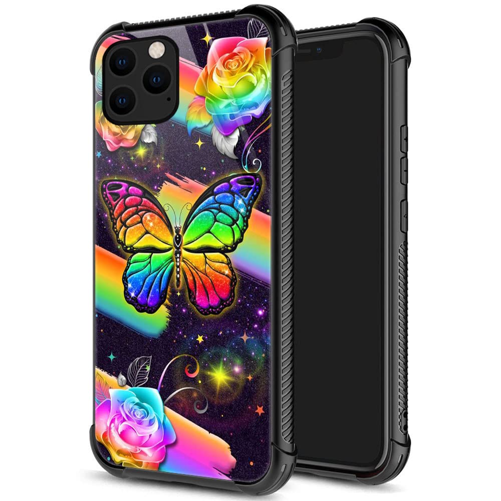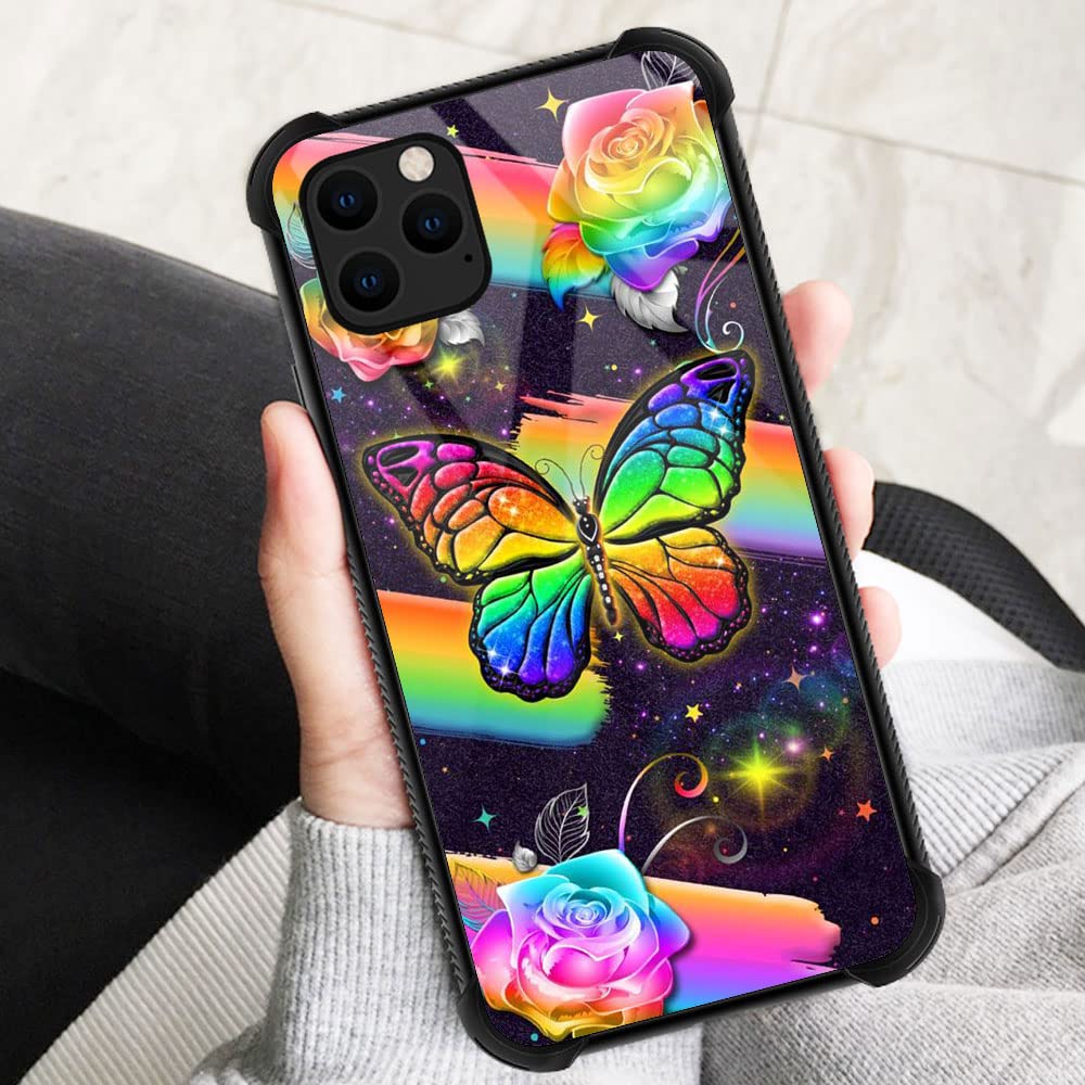Iphone 12 Case,Rainbow Butterfly Iphone 12 Pro Cases For Women Girls,Pattern Design Shockproof Anti Scratch Organic Glass Case F