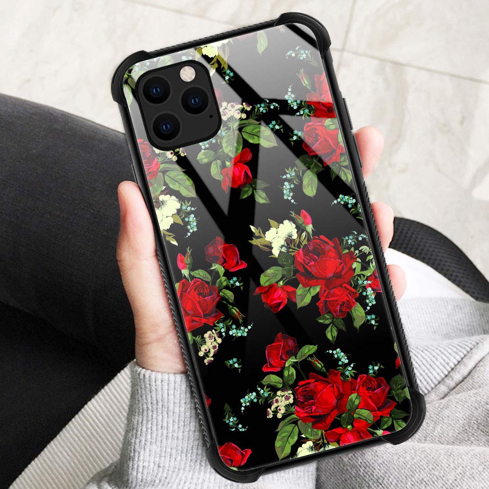 Iphone 12 Mini Case, Red Roses Iphone 12 Mini Cases For Women Girls, Pattern Design Shockproof Anti Scratch Organic Glass Case F