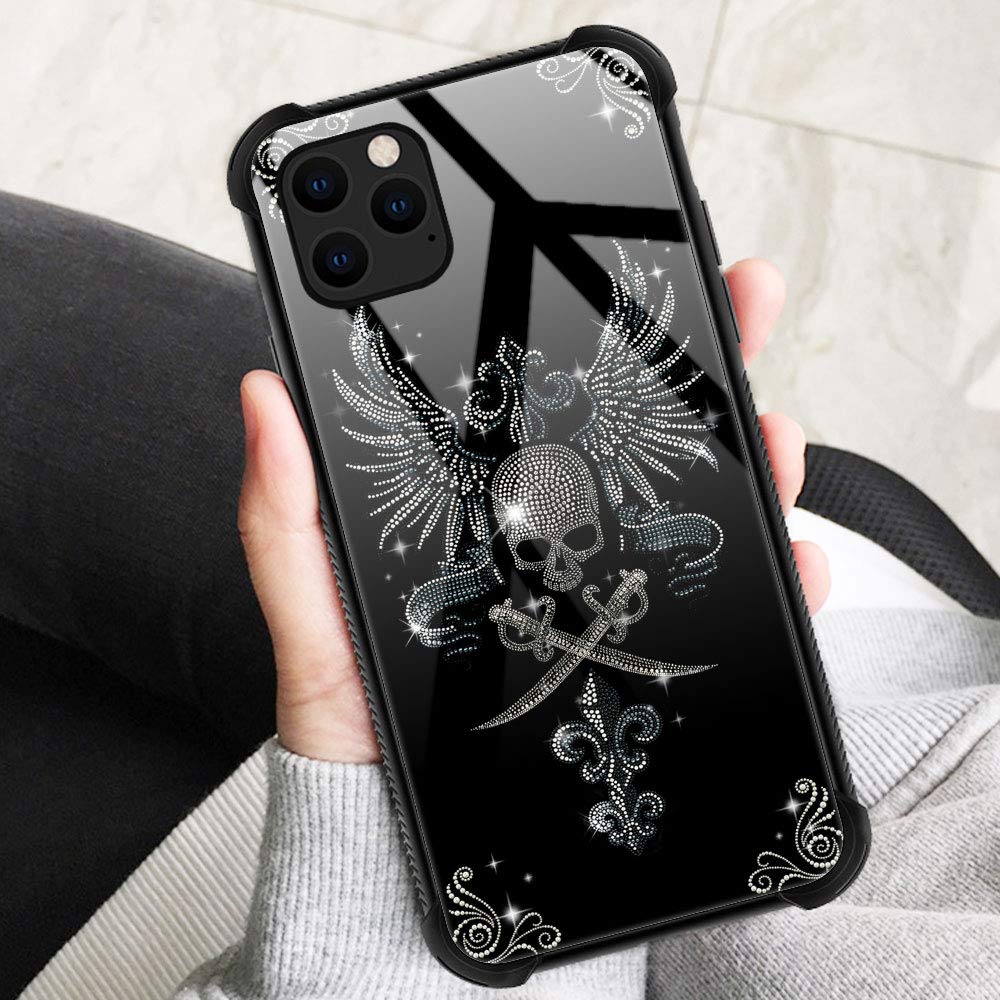 Iphone 13 Case, Diamond Skull Iphone 13 Cases For Women Girls, Pattern Design Shockproof Anti Scratch Organic Glass Case For App